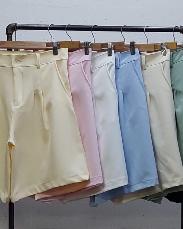 Bermuda confeccionada en tela de sastreria con detalle de bolsillos, doble pinzas delanteras, pasacinto, cierre y boton.