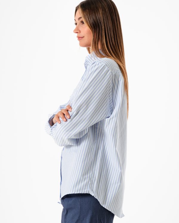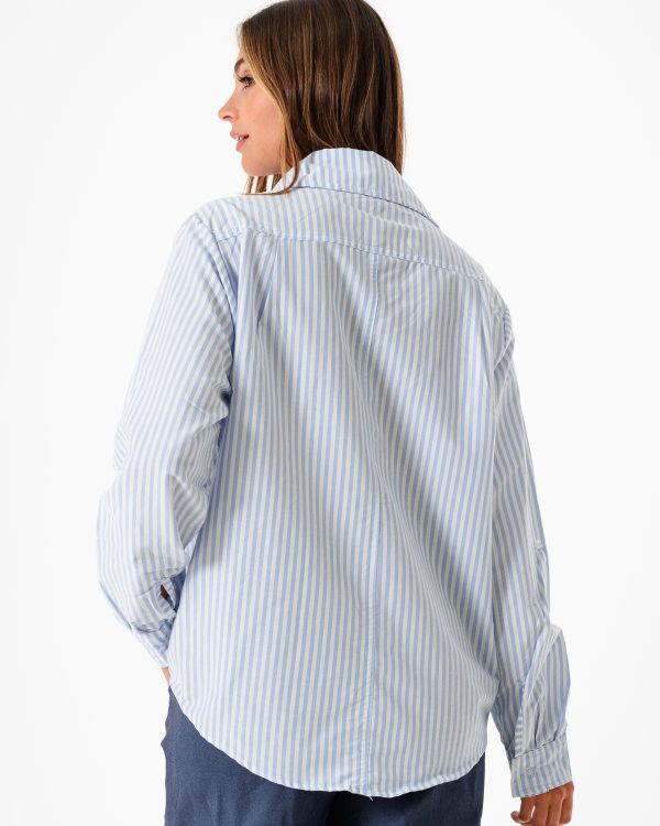 Camisa estilo over confeccionada en tela de poplin rayado con detalle de bolsillo pinzado y botones.*
