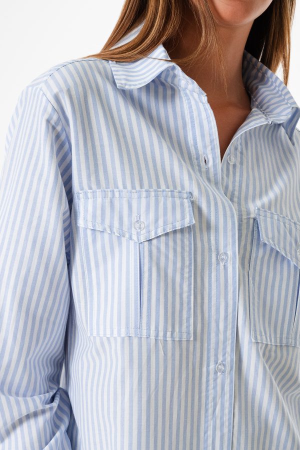 Camisa estilo over confeccionada en tela de poplin rayado con detalle de bolsillo pinzado y botones.*
