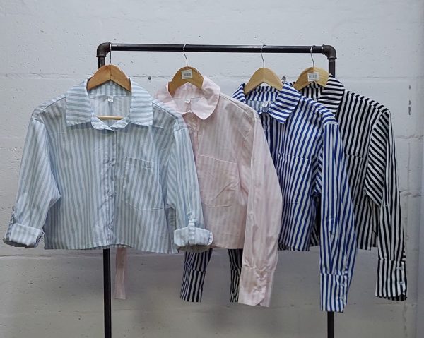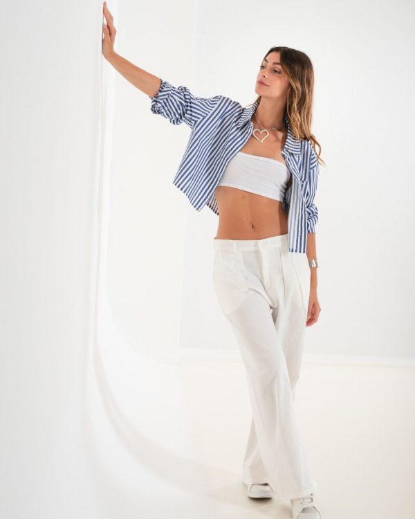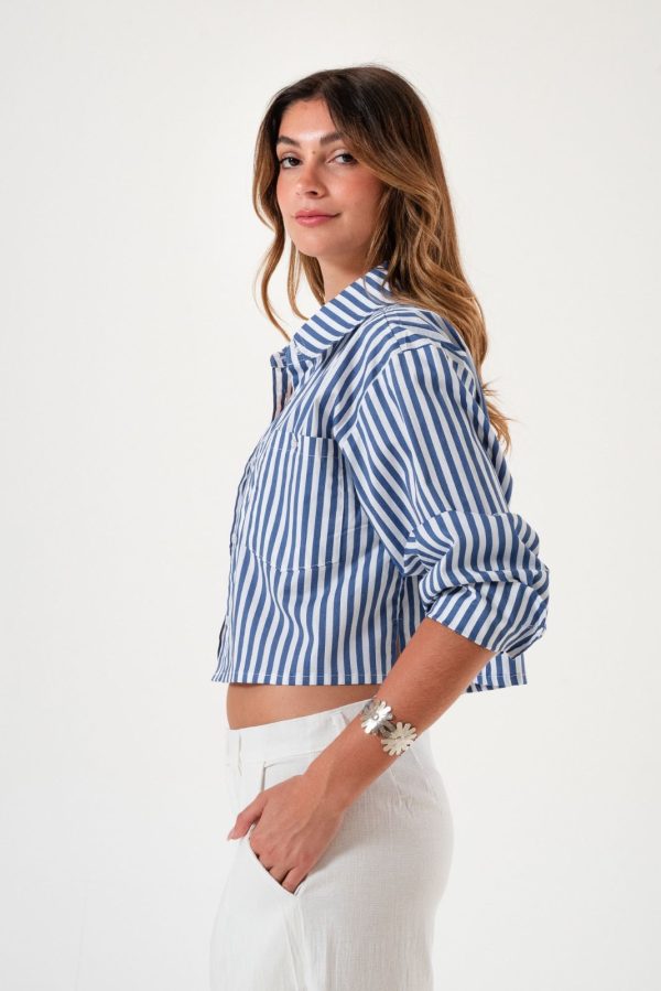 Camisa estilo pupera con detalle de manga larga, bolsillos y botones.