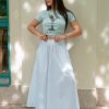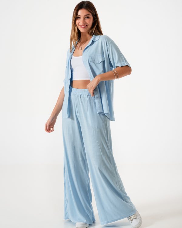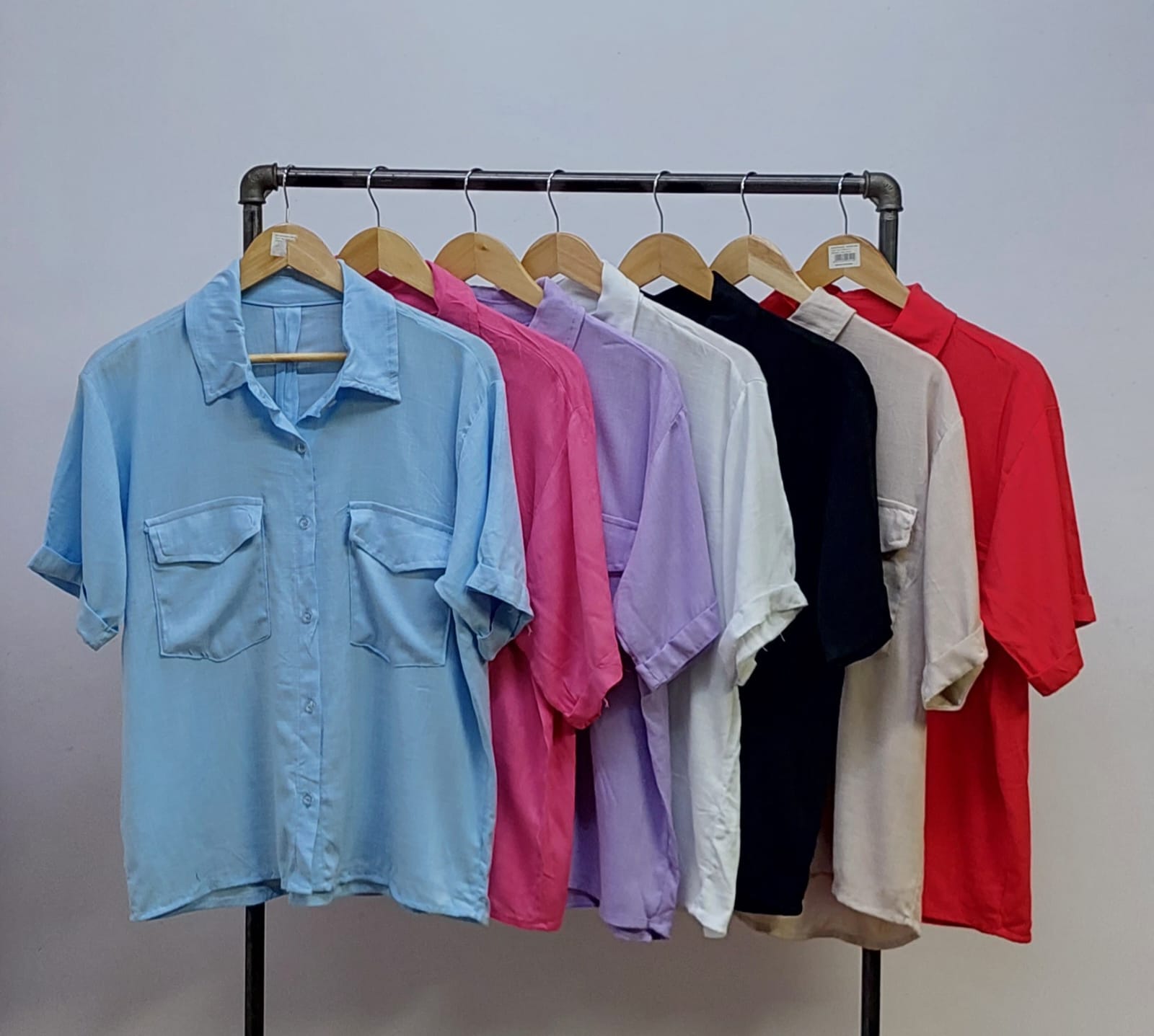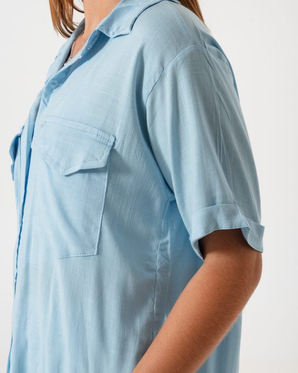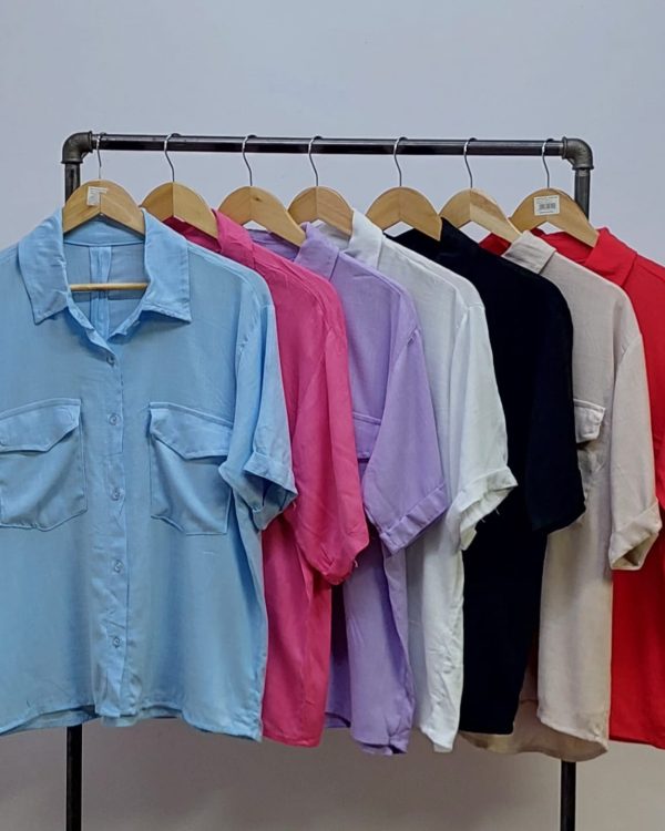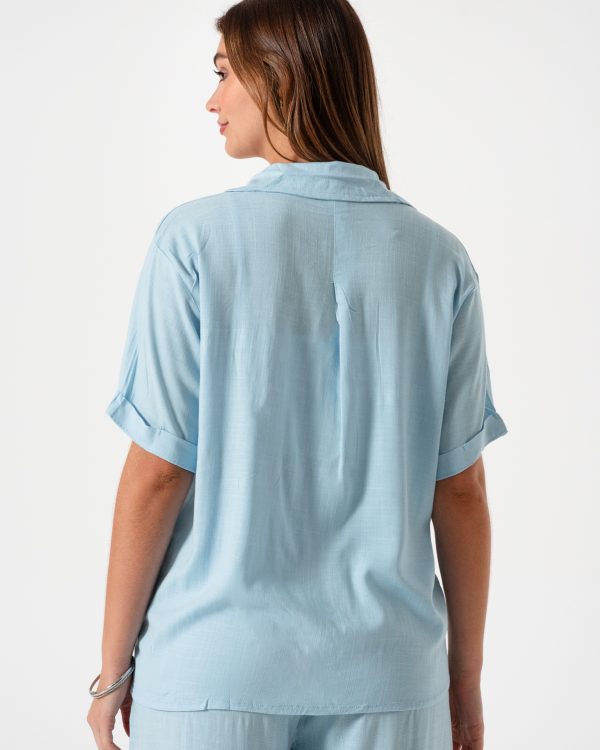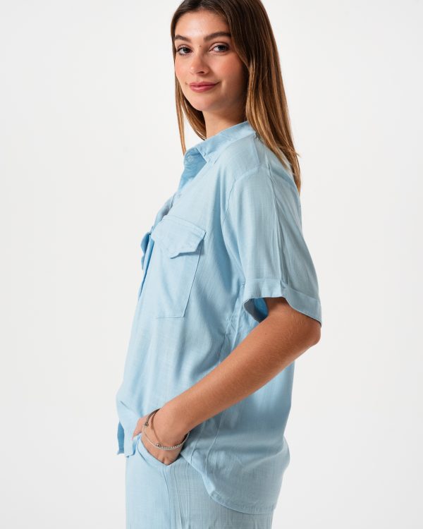 Camisa confeccionada en tela de lino con detalle de bolsillos delanteros y botones.