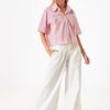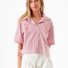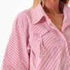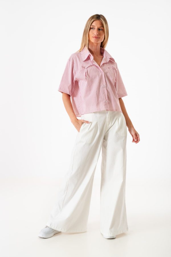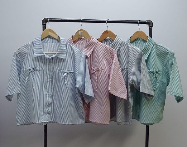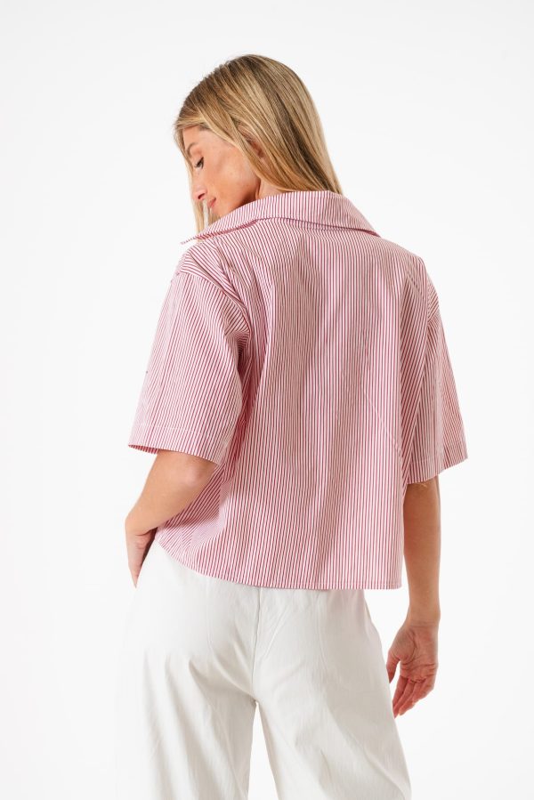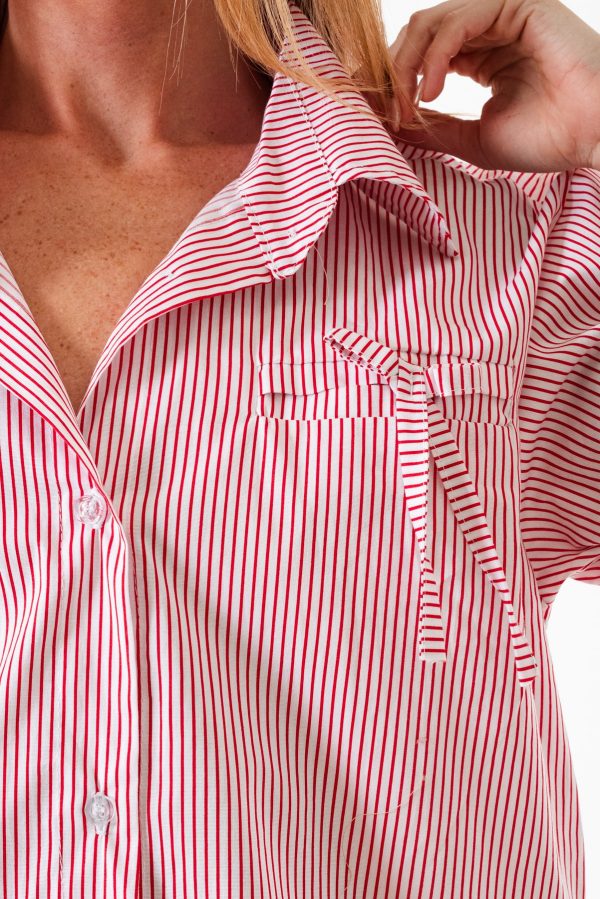 Camisa estilo corta confeccionado en tela de poplin rayado con detalle de bolsillos, moño y botones.