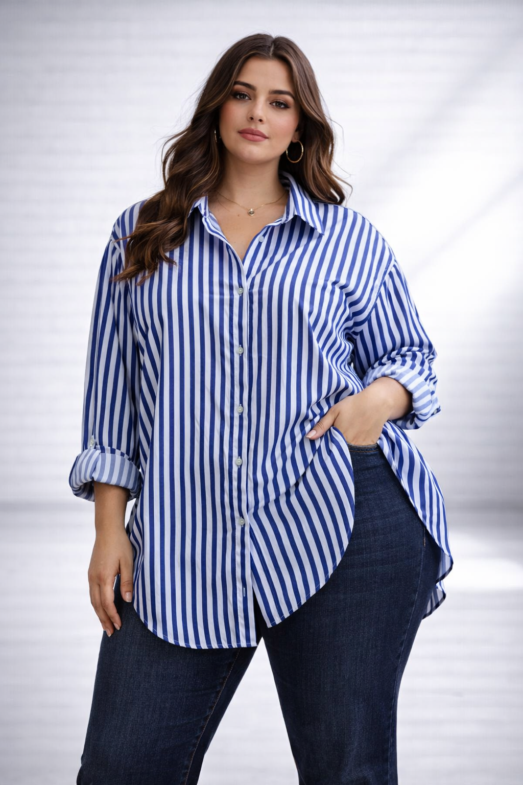 CAMISA OVER ERIKA POPLIN RAYADO PLUS SIZE