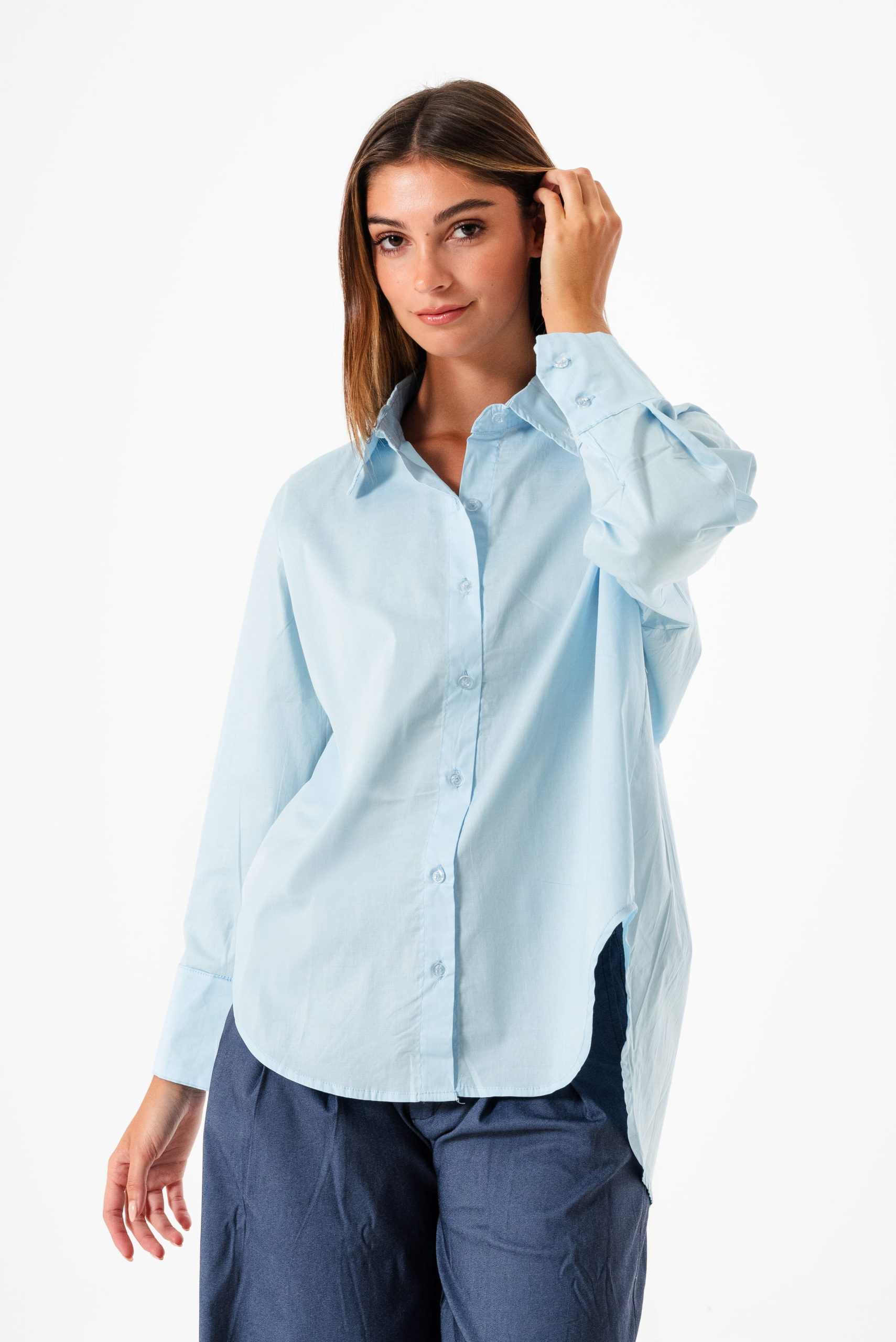 Camisa estilo over erika confeccionado en tela de poplin con detalle de botones.