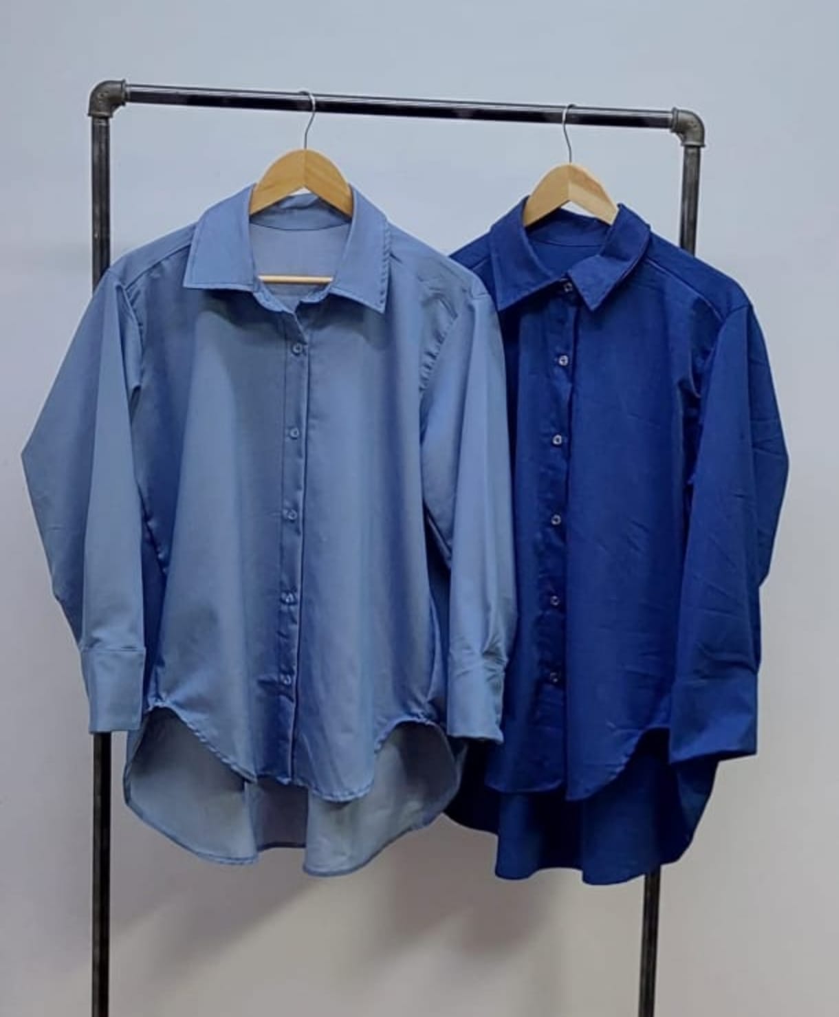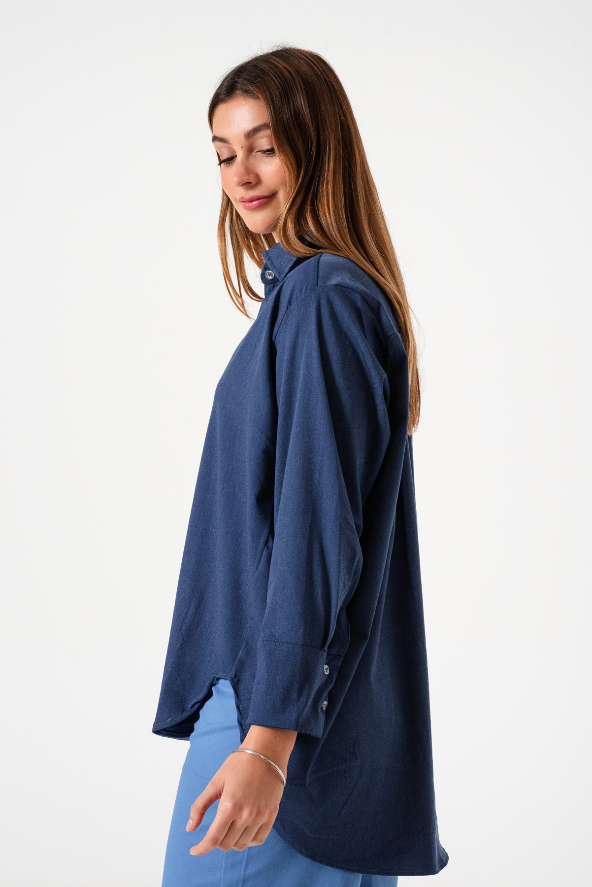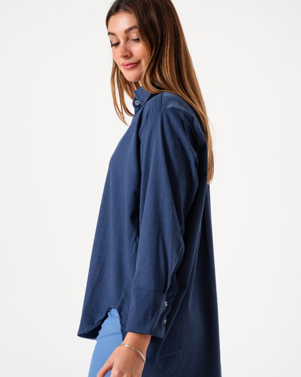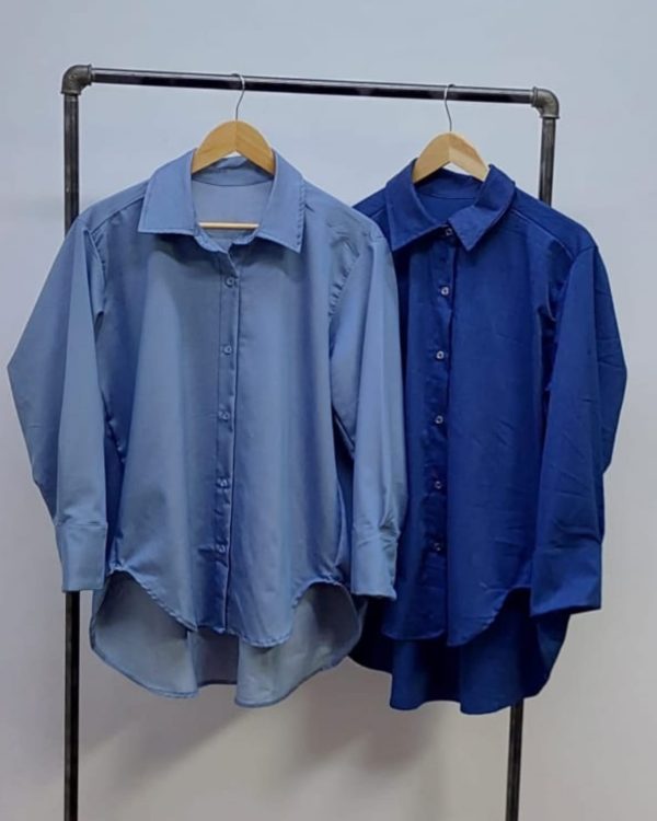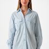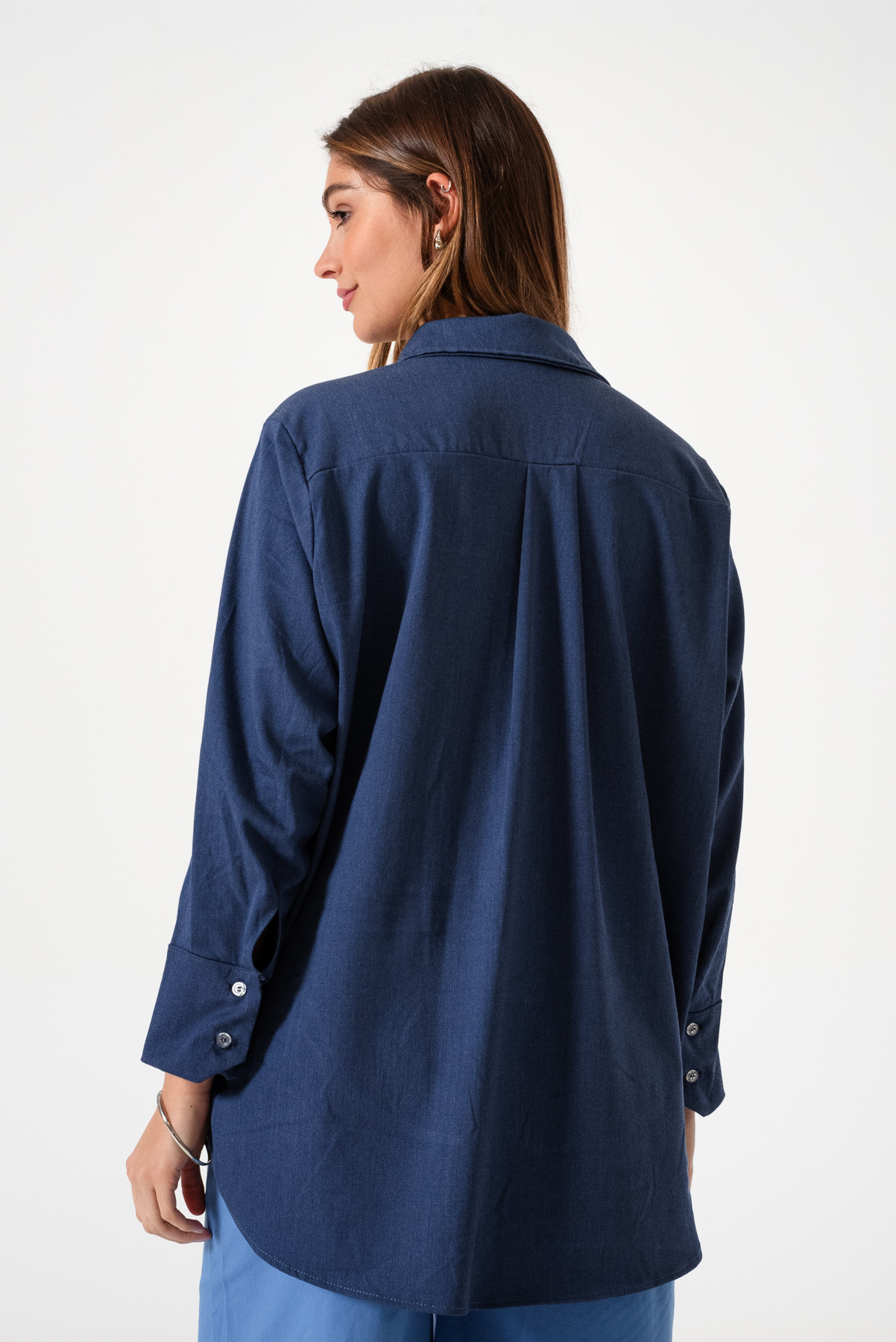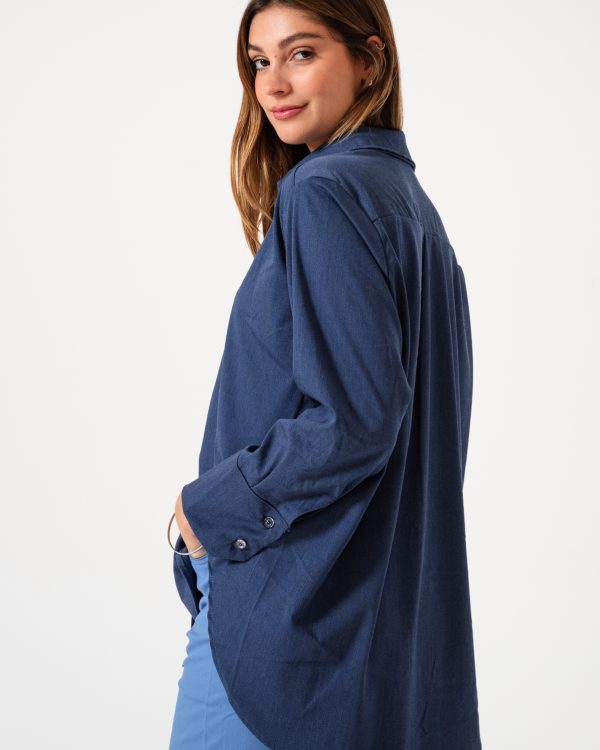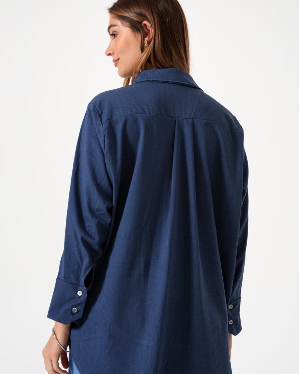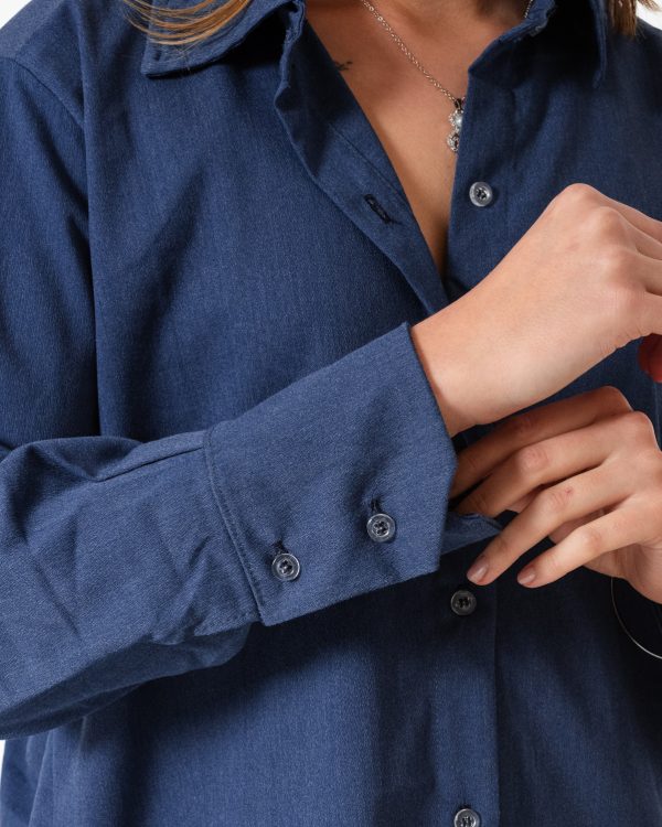 Camisa estilo over confeccionado en tela de simil jean con detalle de botones.