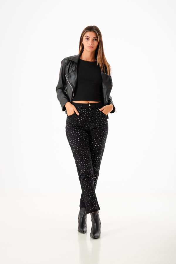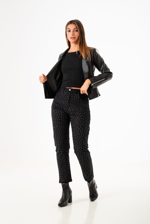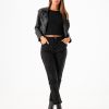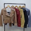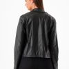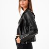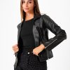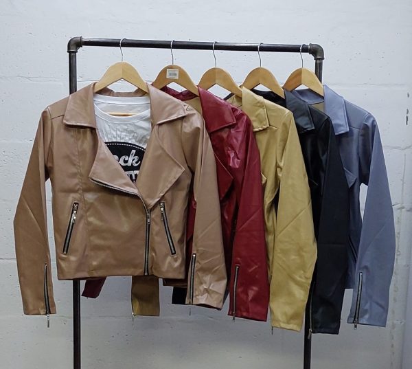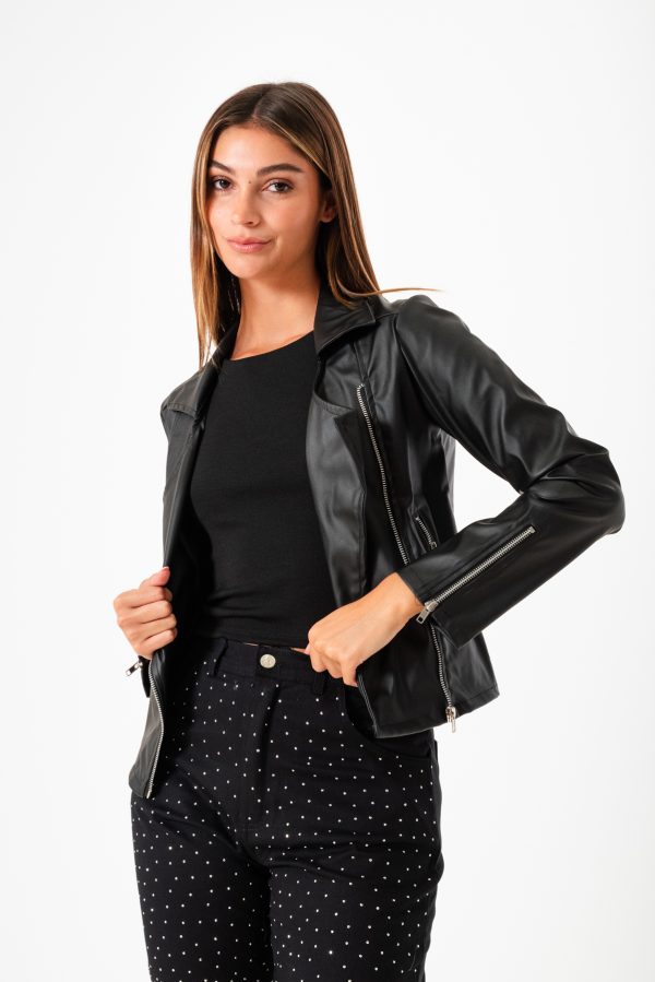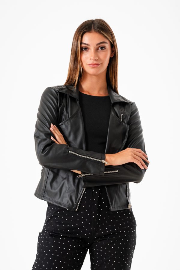 Campera confeccionada en tela de ecocuero con detalle de 4 cierre y bolsillos.