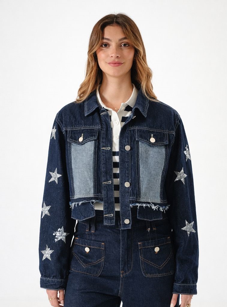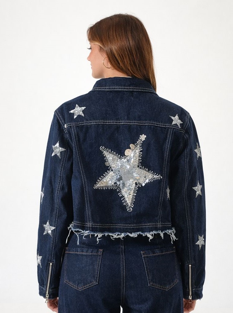 Campera confeccionada en tela de jean con detalle de estrellas y botones.