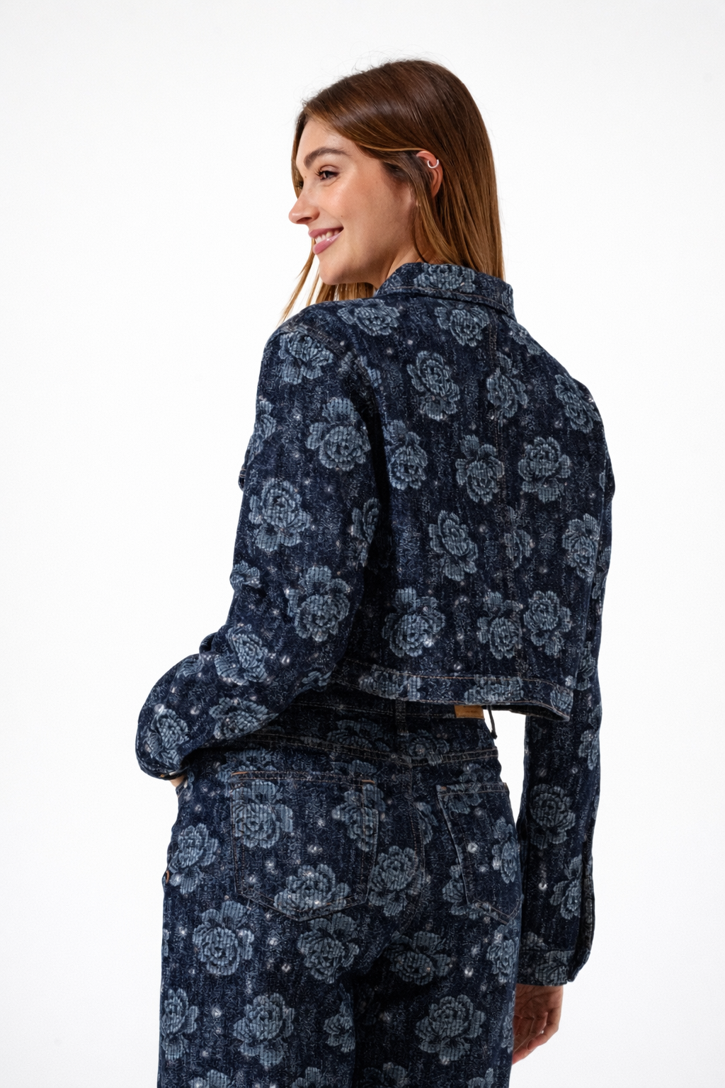 Campera confeccionada en tela de jean con detalle de strass