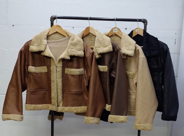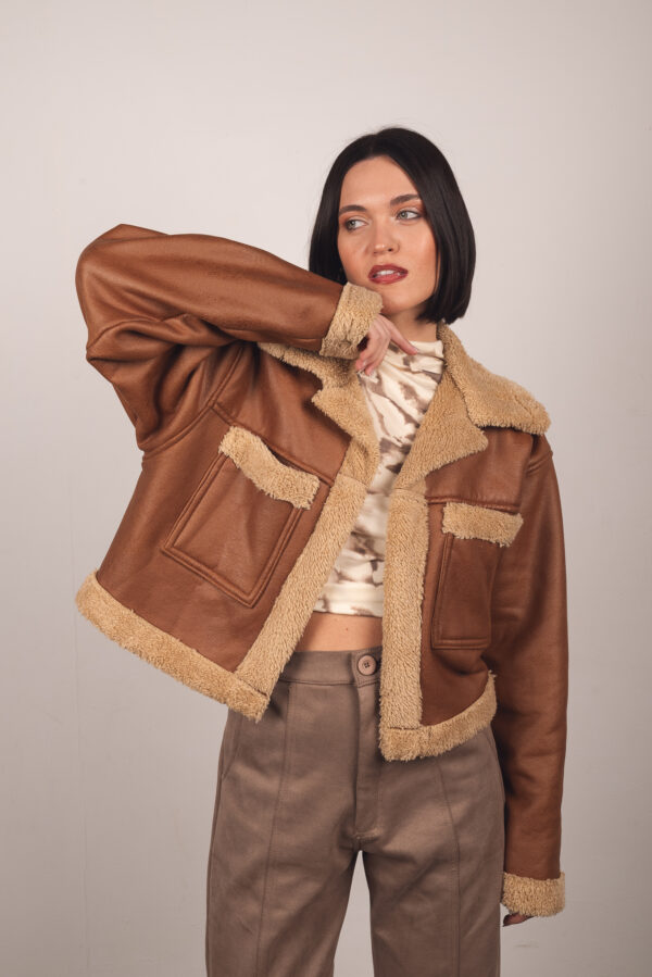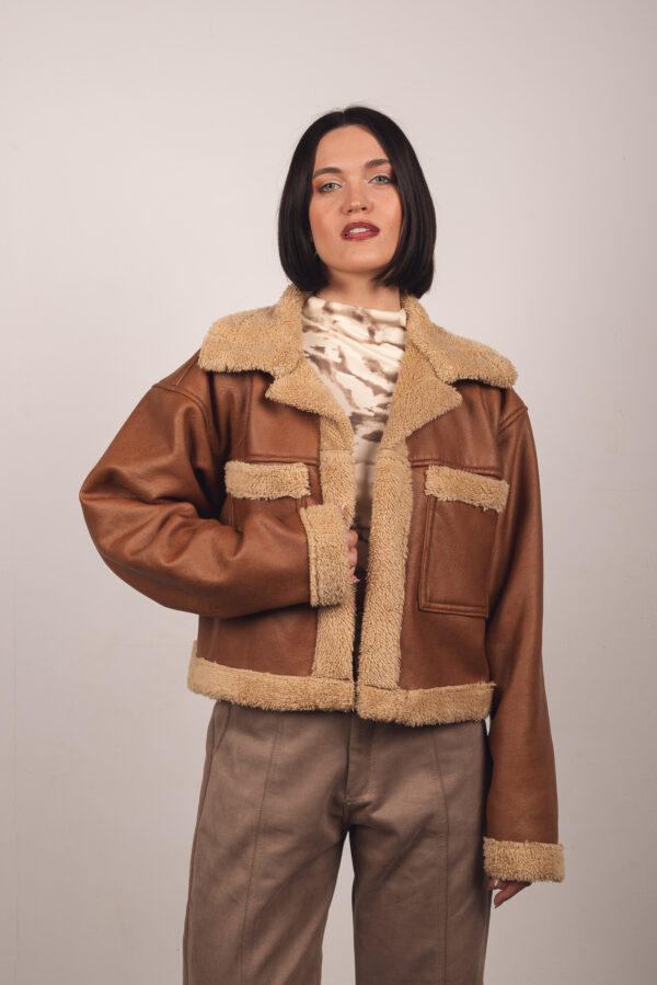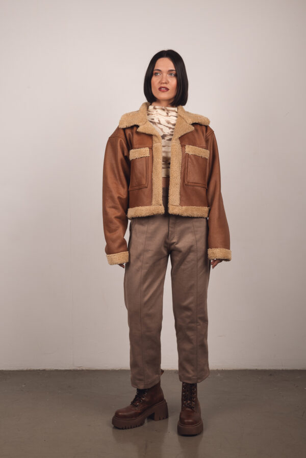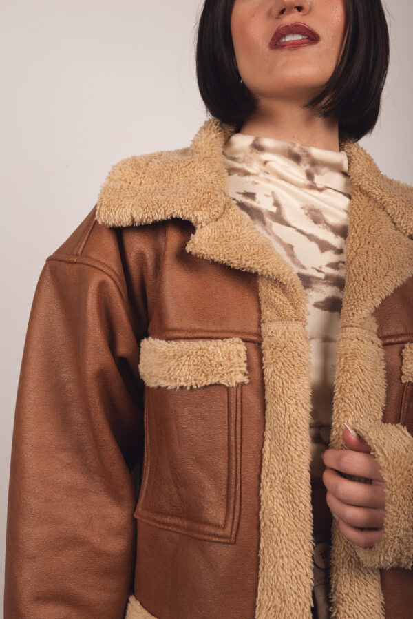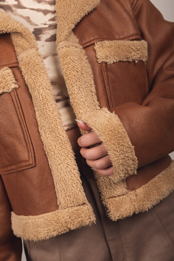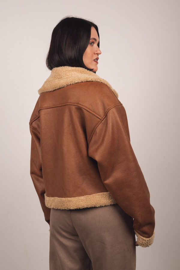 Casaca confeccionada en tela de gamulan con detalle de bolsillos