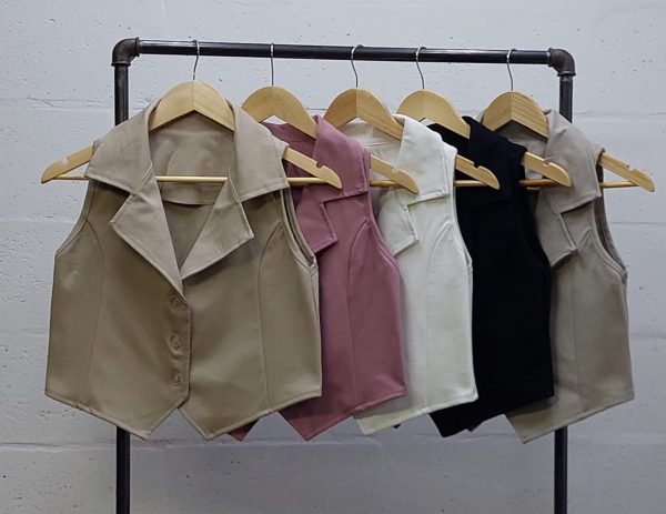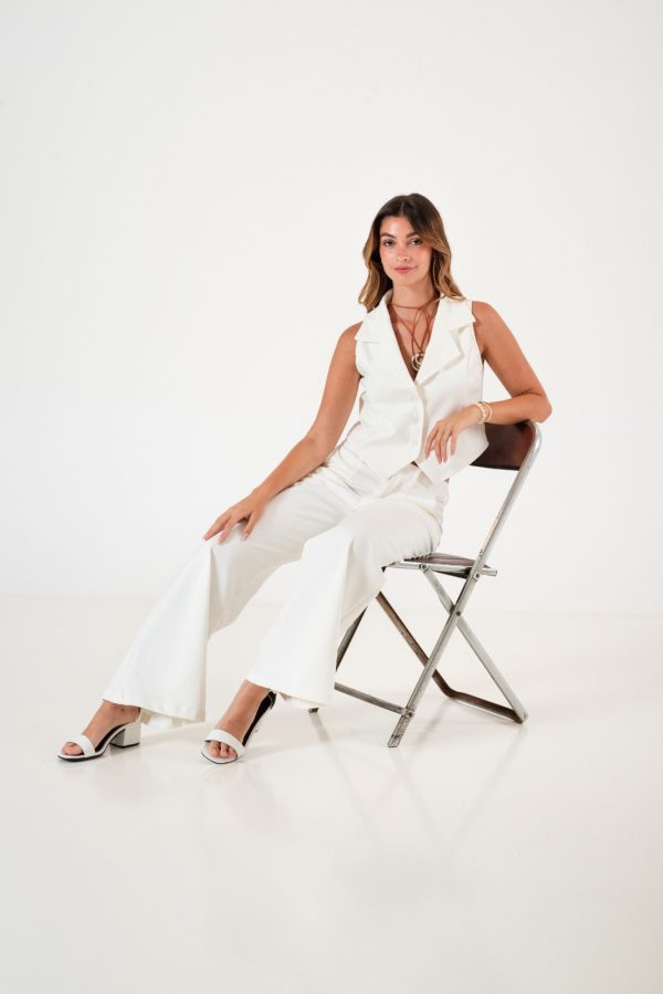 Chaleco confeccionado en tela de punto roma con detalle de botones.