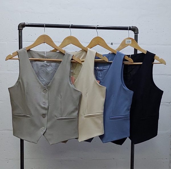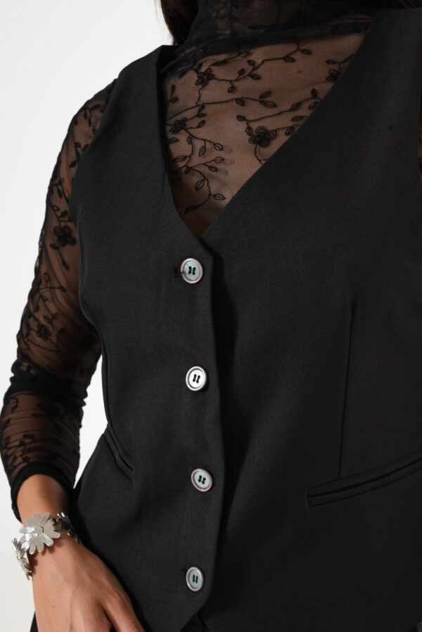 Chaleco confeccionado en tela de sastreria con detalle de botones