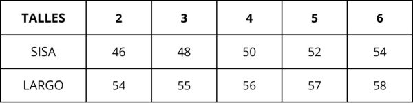 | Talles | 2, 3, 4, 5, 6 |