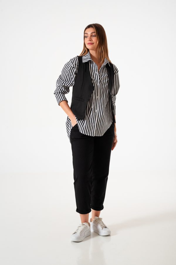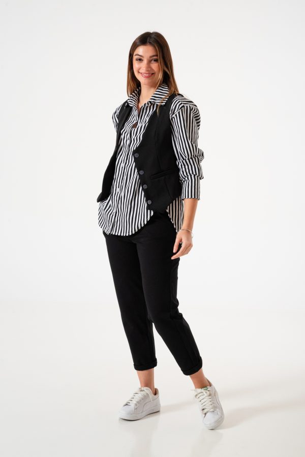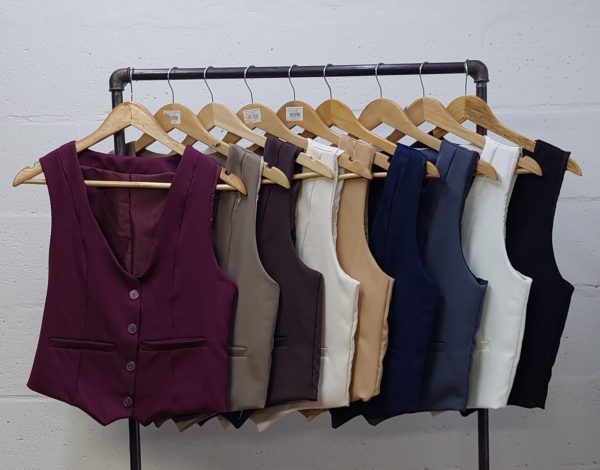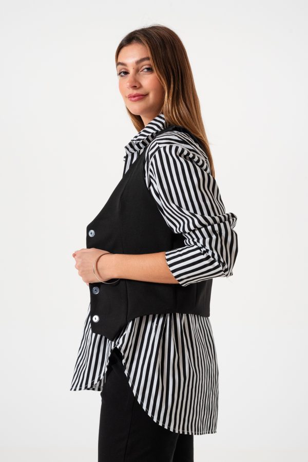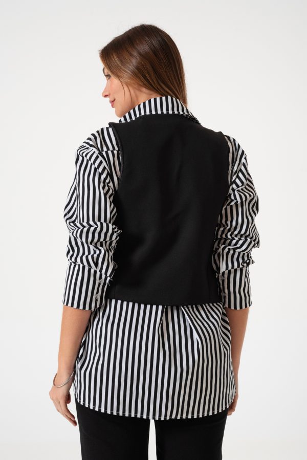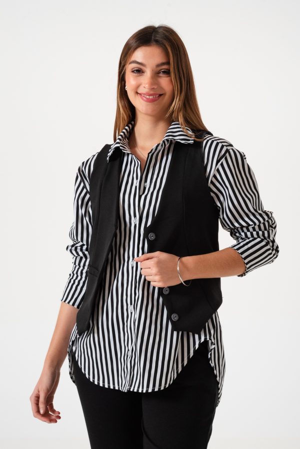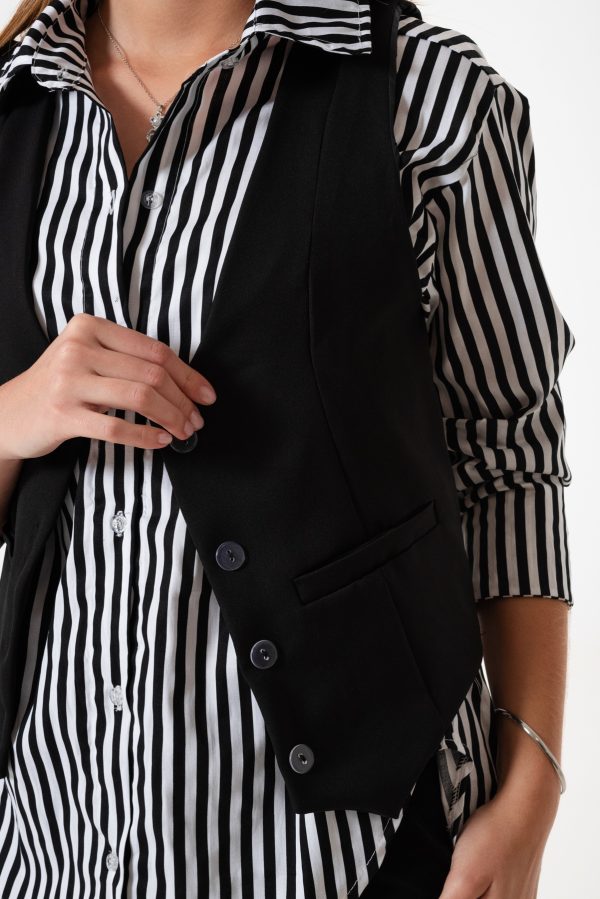 Chaleco confeccionado en tela sastrero con detalle de bolsillos y botones.