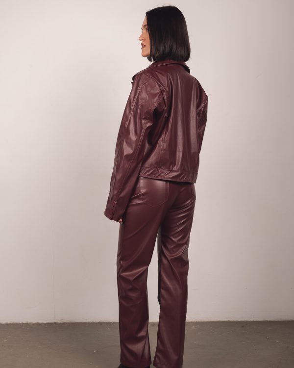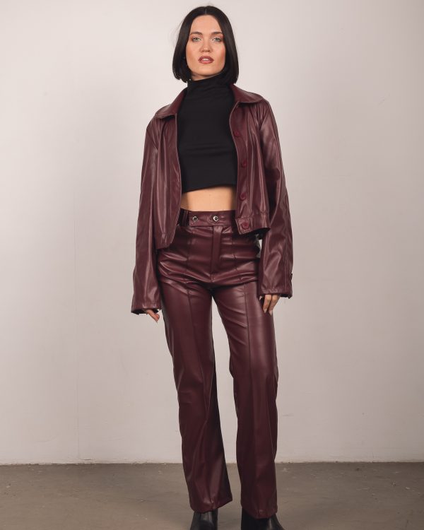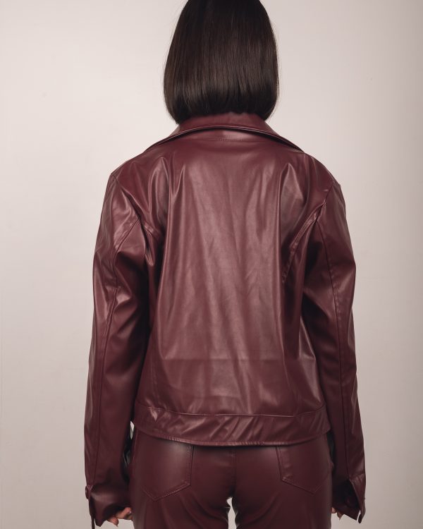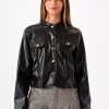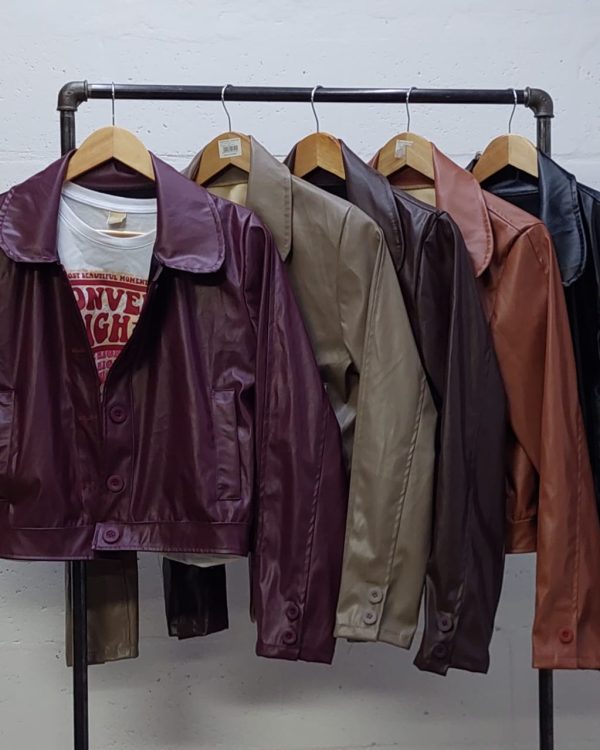 Campera estilo chaqueta confeccionada en tela de ecocuero con detalle de botones y bolsillos.