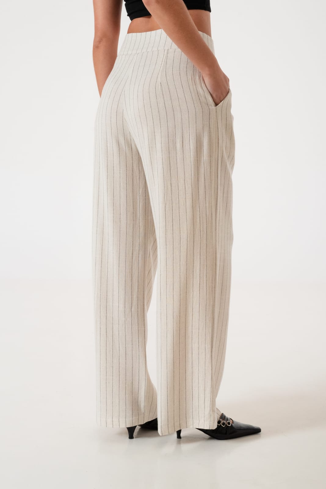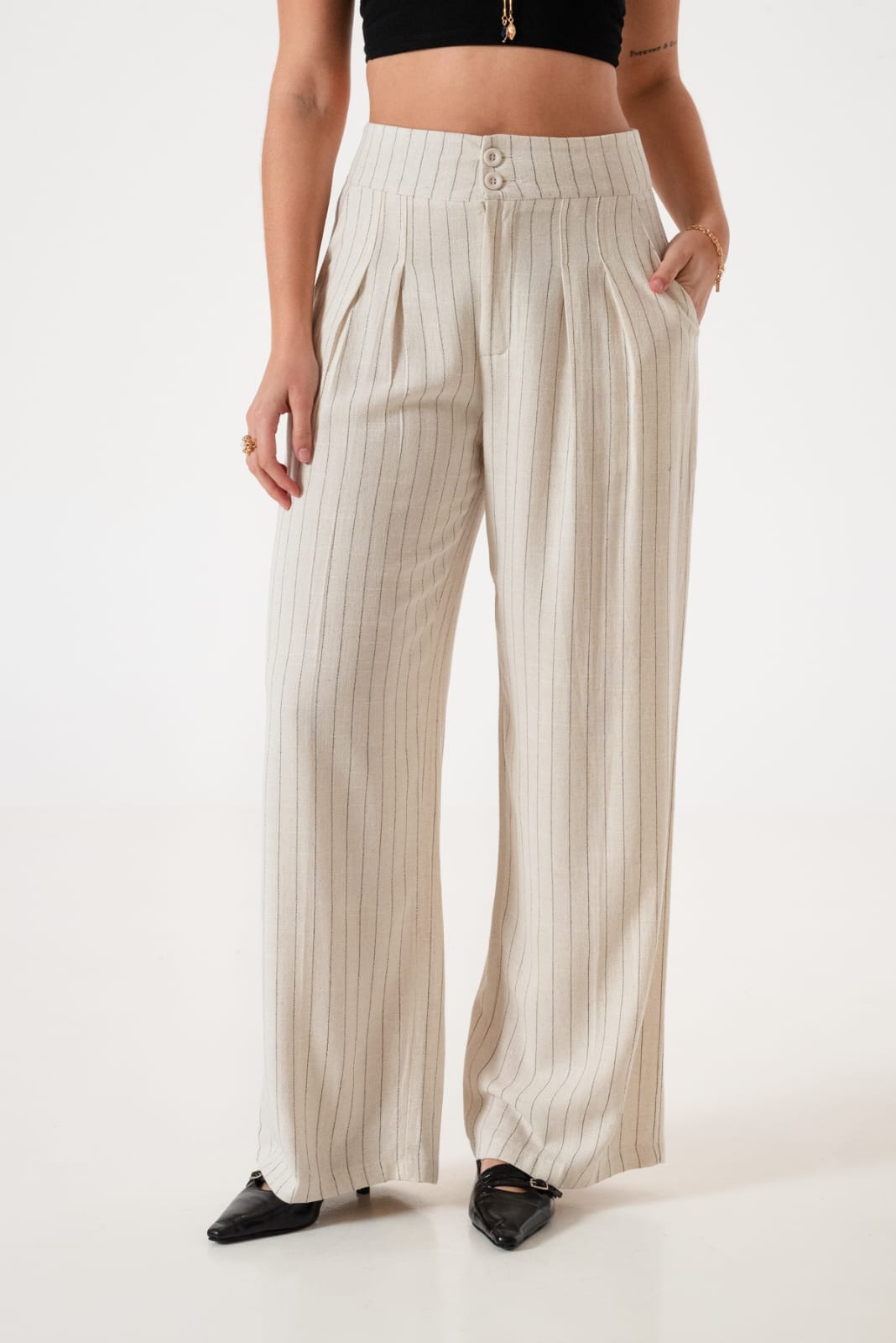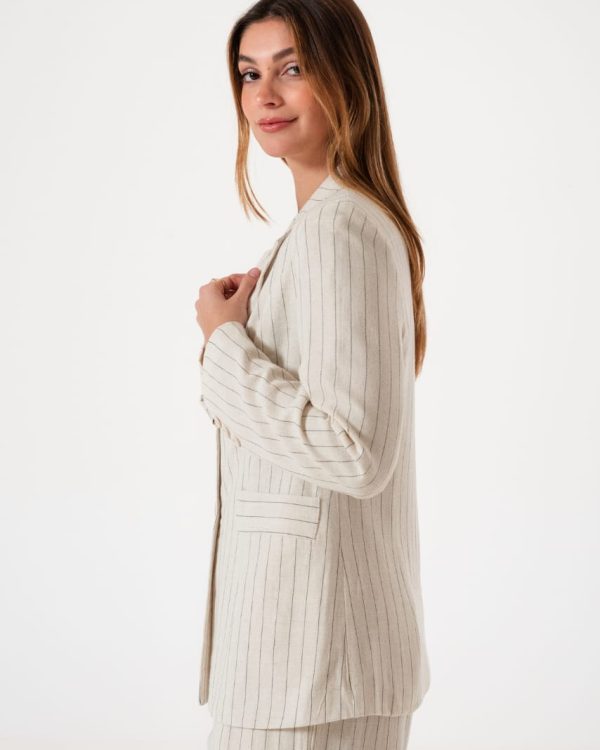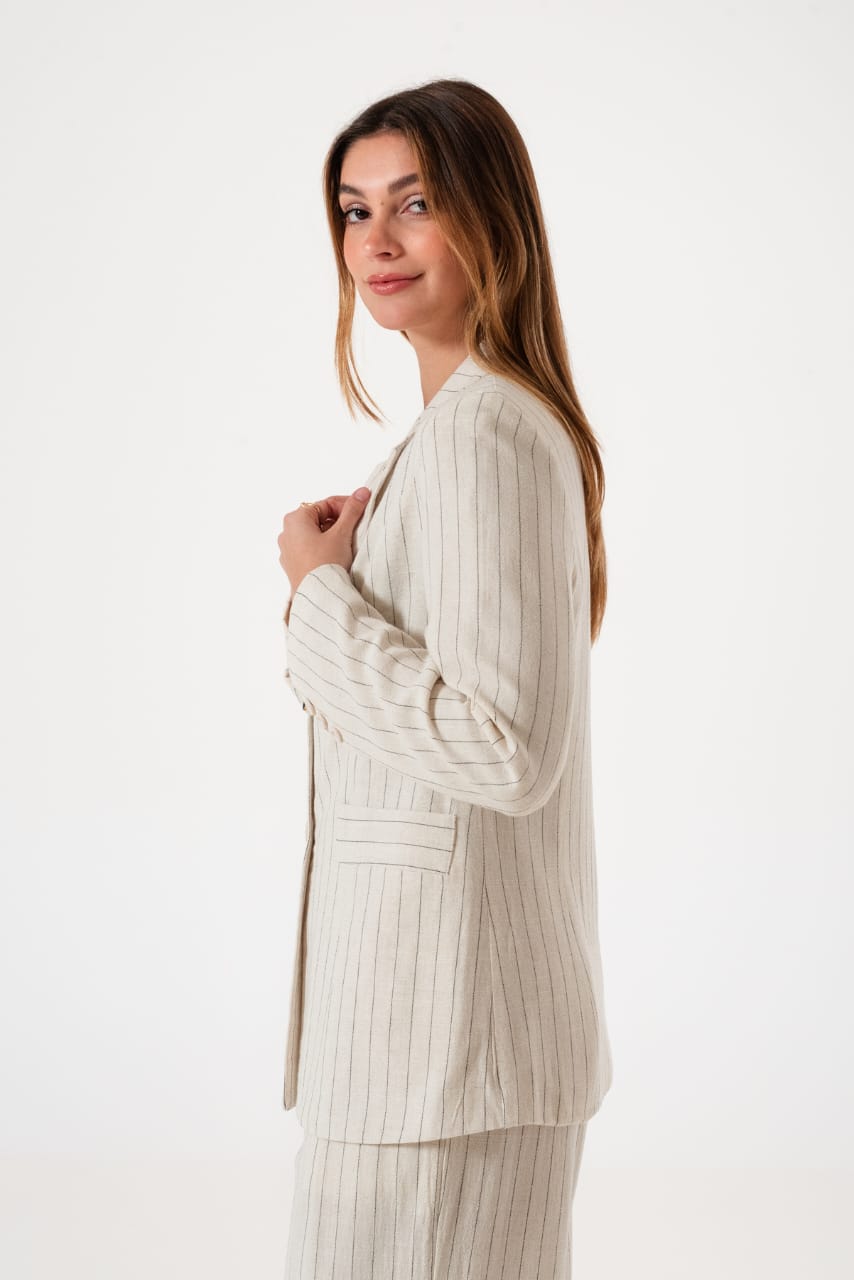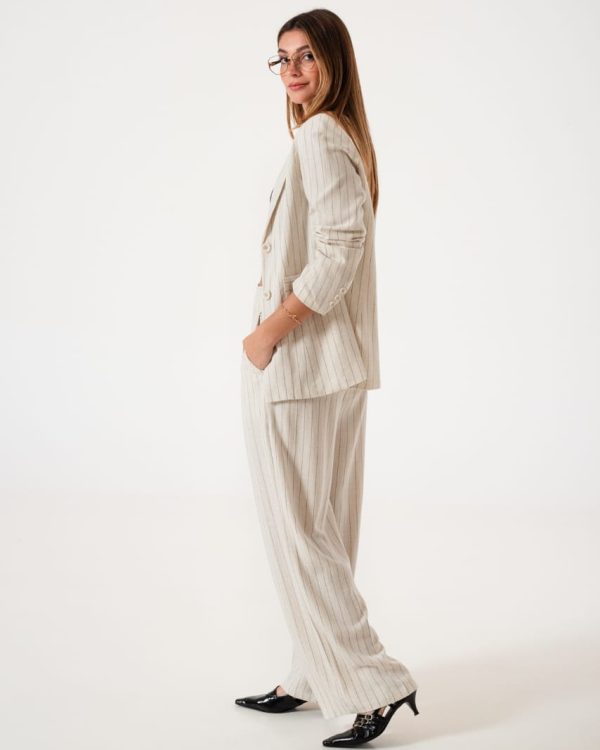 Conjunto de saco y palazo confeccionado en tela de lino rayado