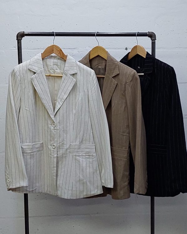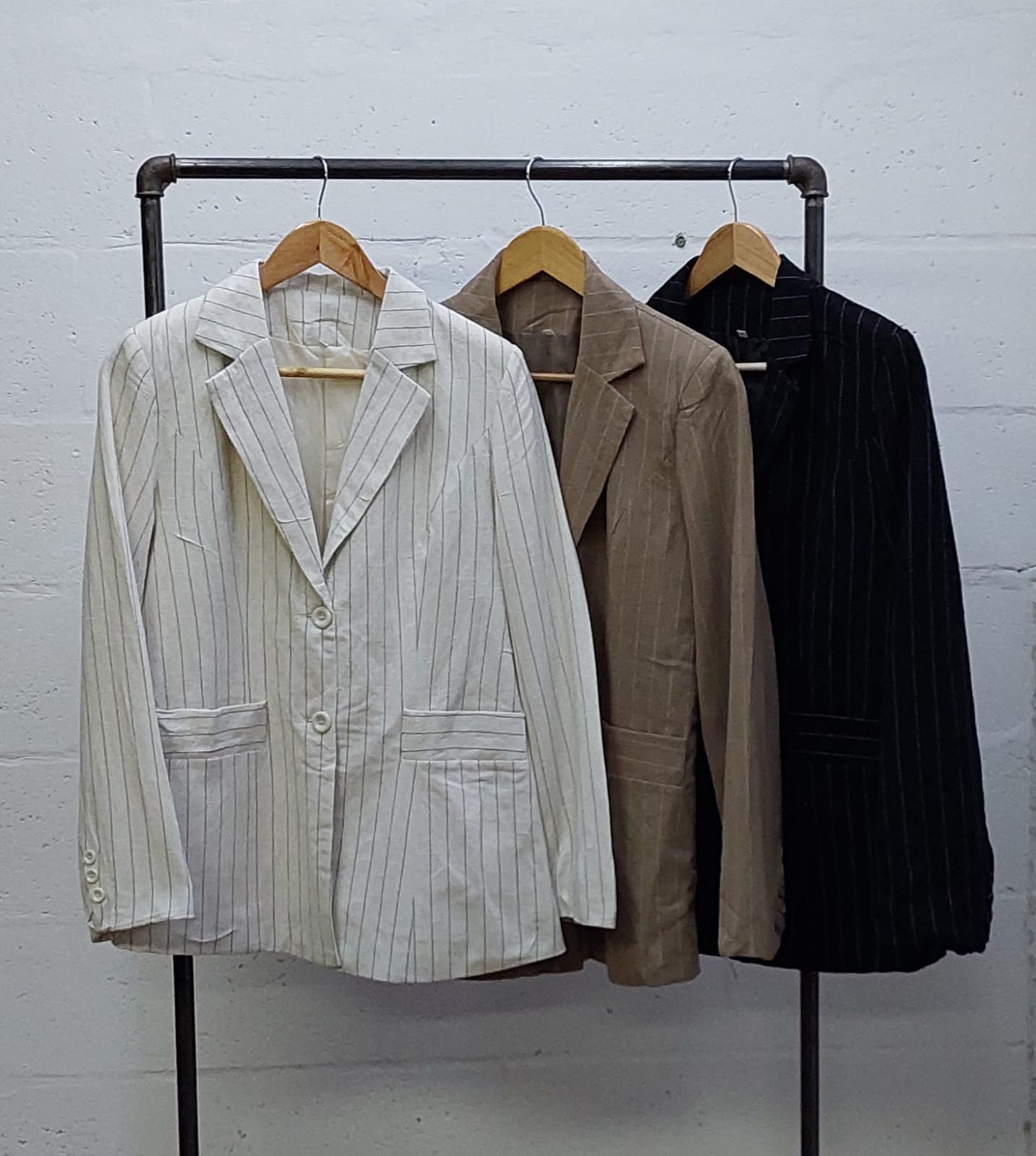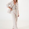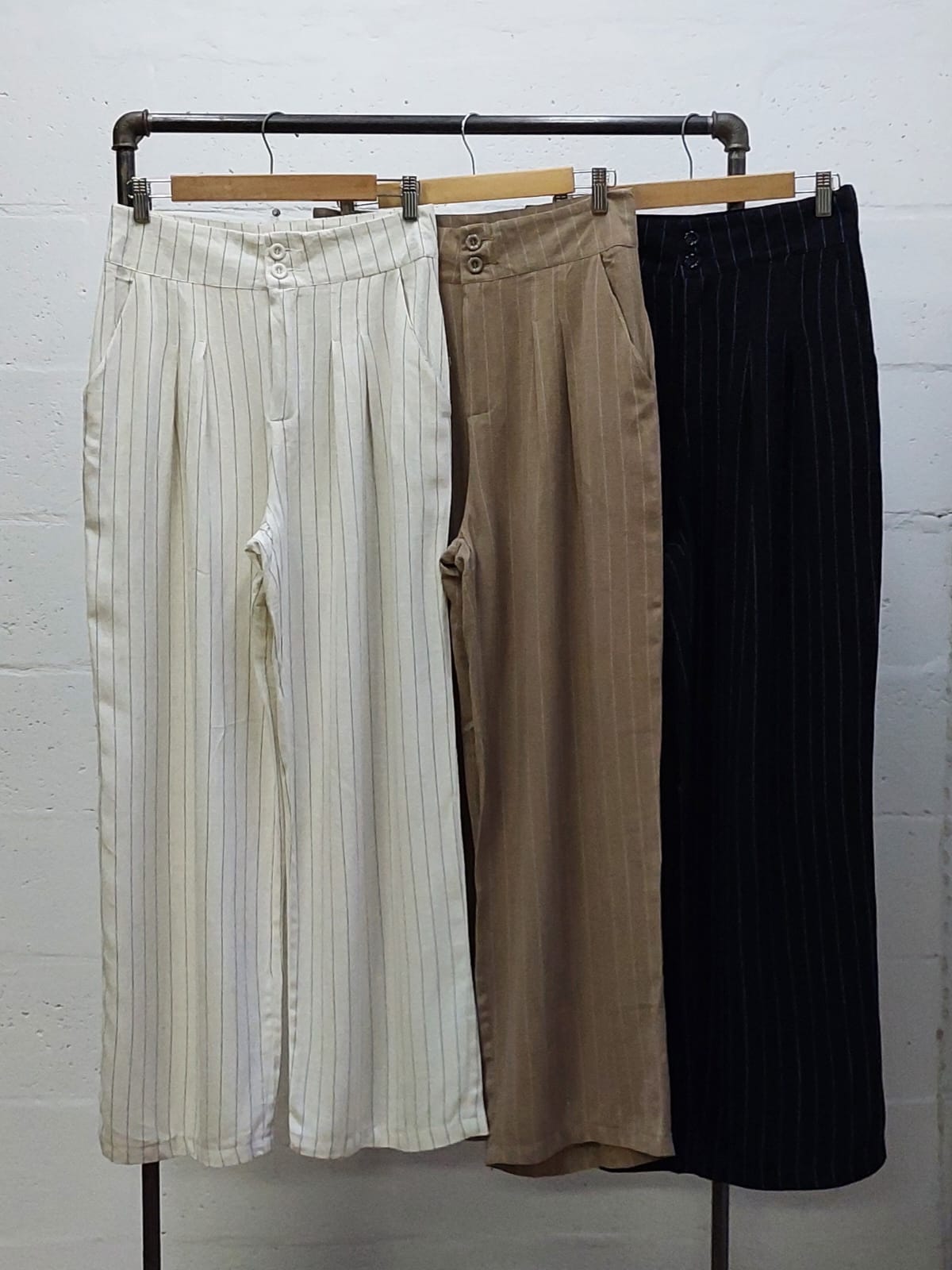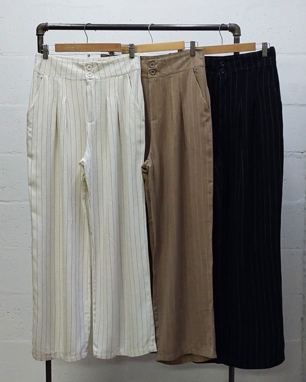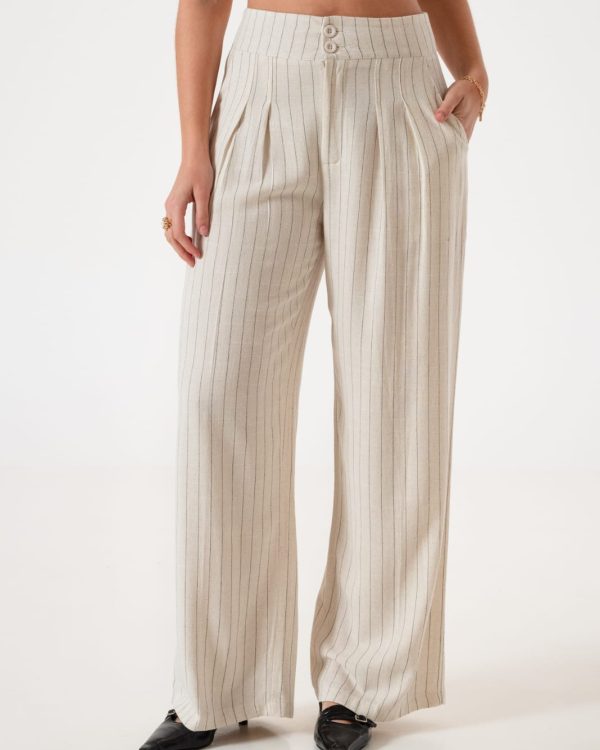 Conjunto de saco y palazo confeccionado en tela de lino rayado