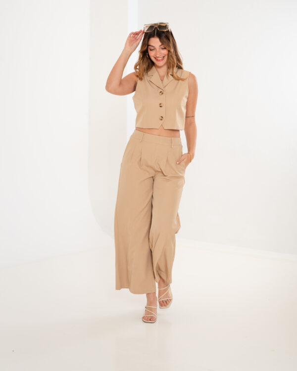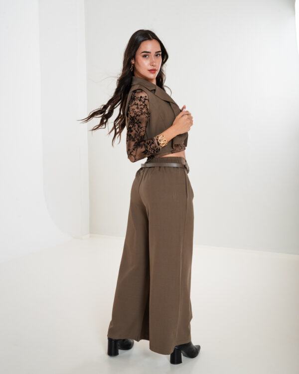 Conjunto de chaleco corto y palazo confeccionado en tela de sastreria