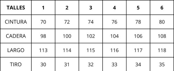 | Talles | 1, 2, 3, 4, 5, 6 |