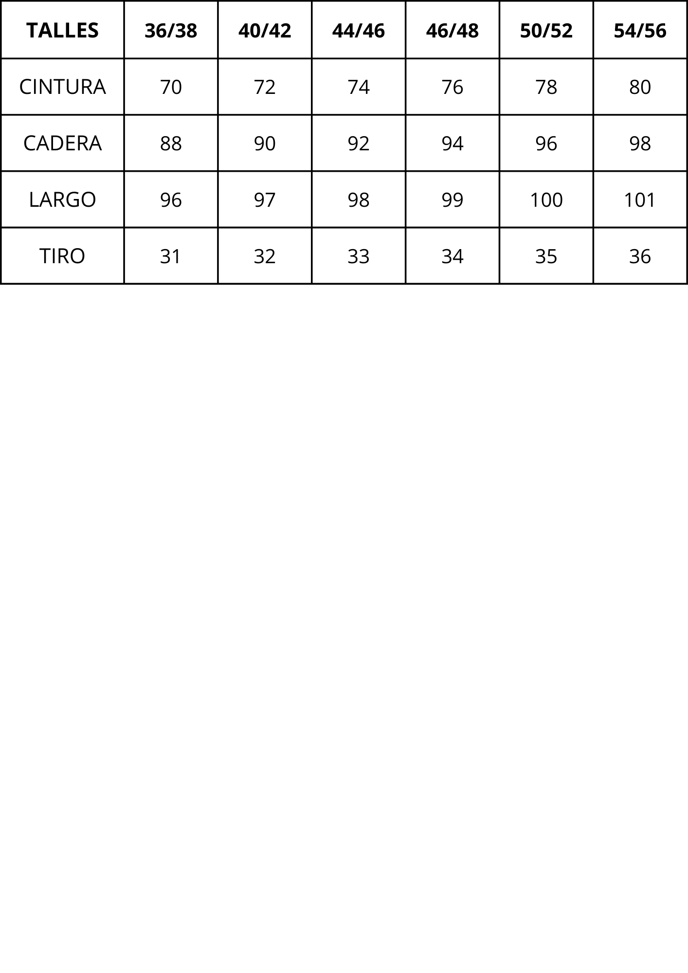 | Talles | 36/38, 40/42, 44/46, 46/48, 50/52, 54/56 |