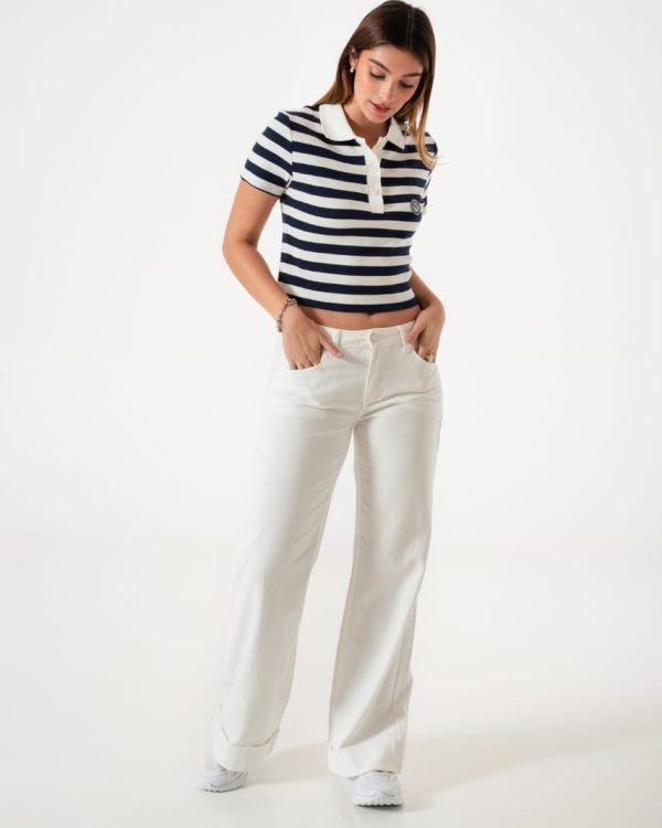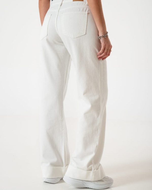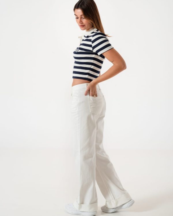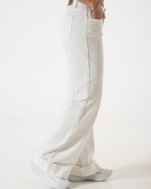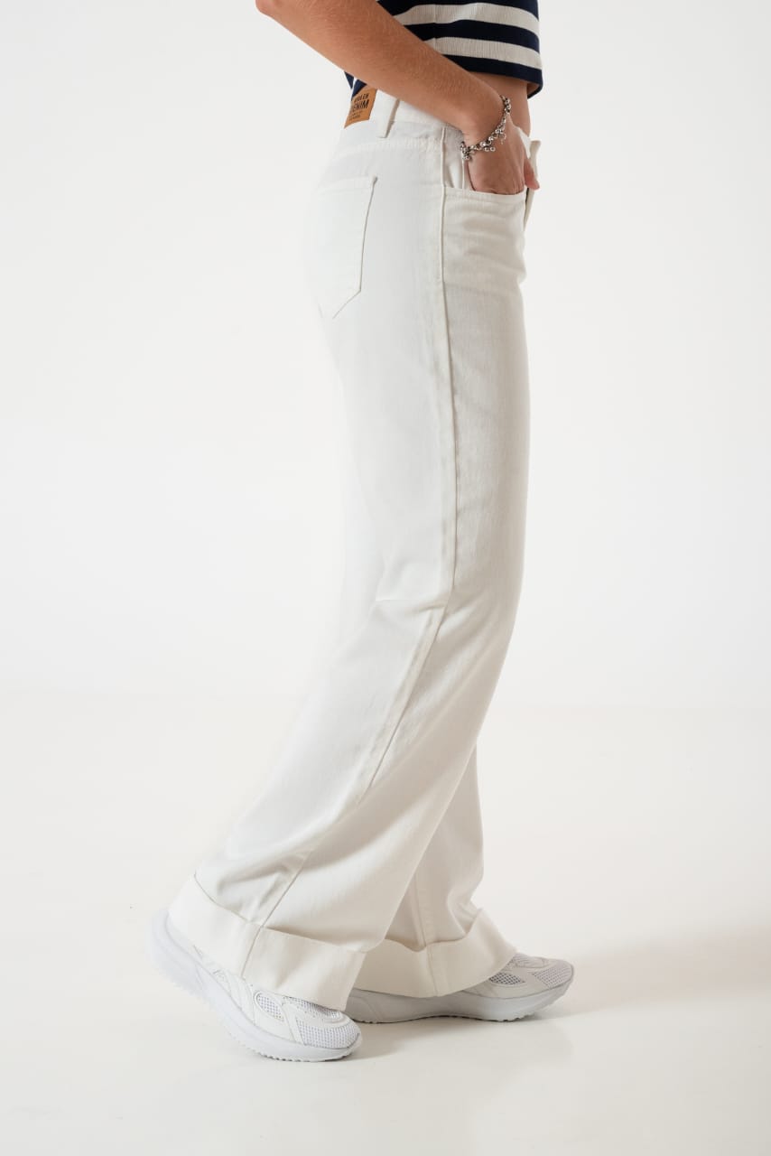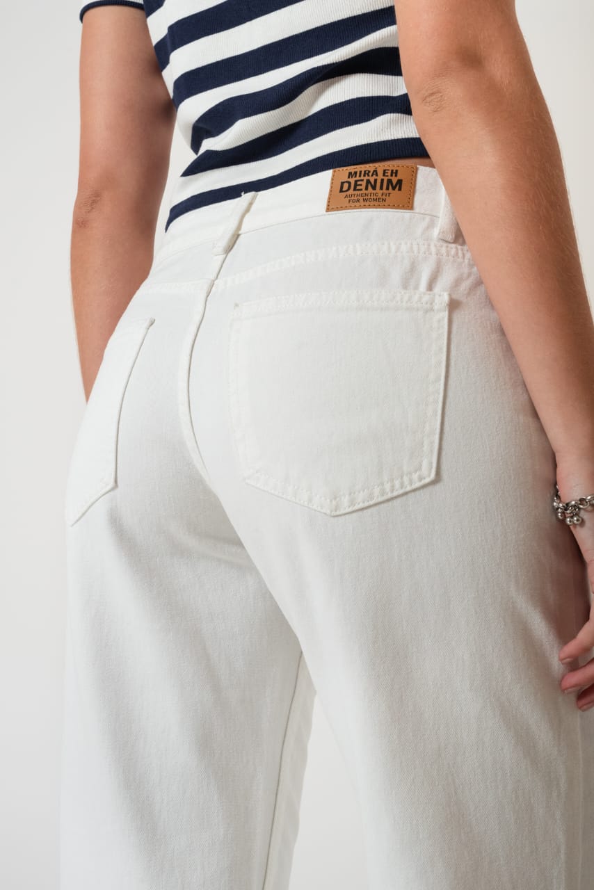 Vaquero estilo wid leg confeccionado en tela de jean con detalle de botamanga, bolsillos, pasacinto, cierre y boton.