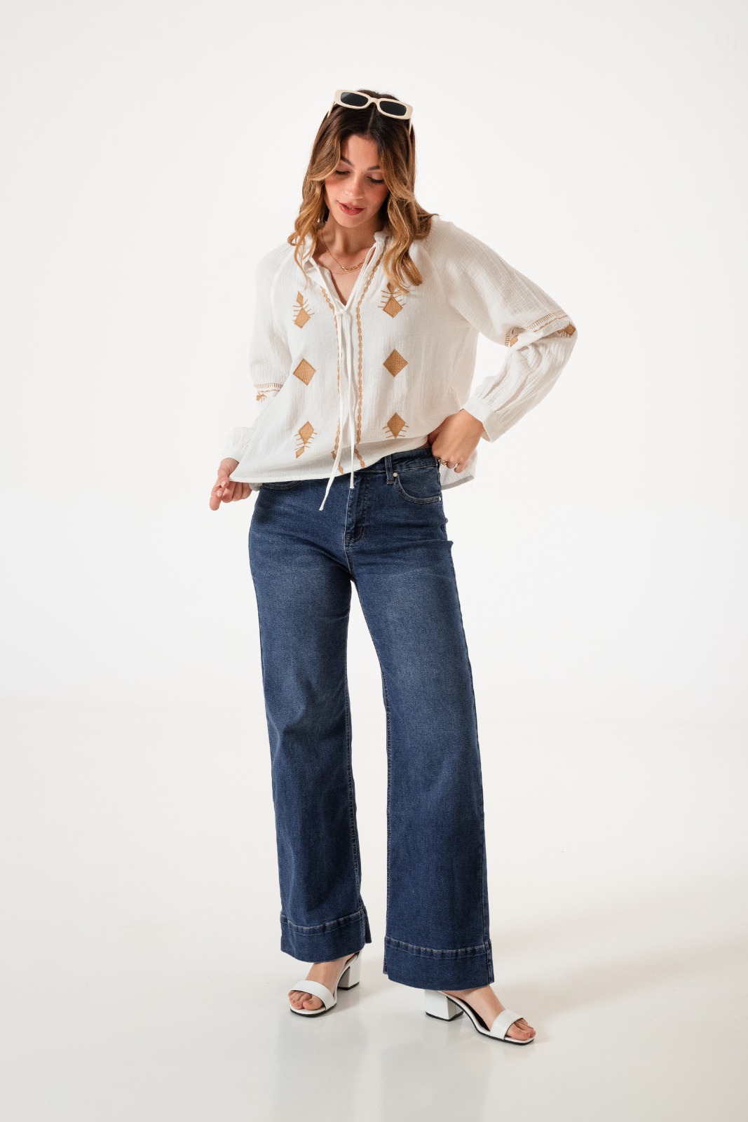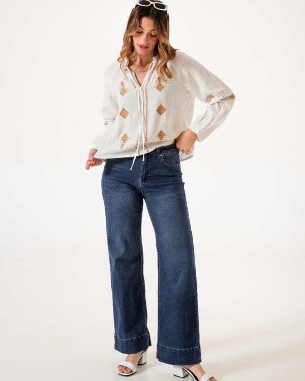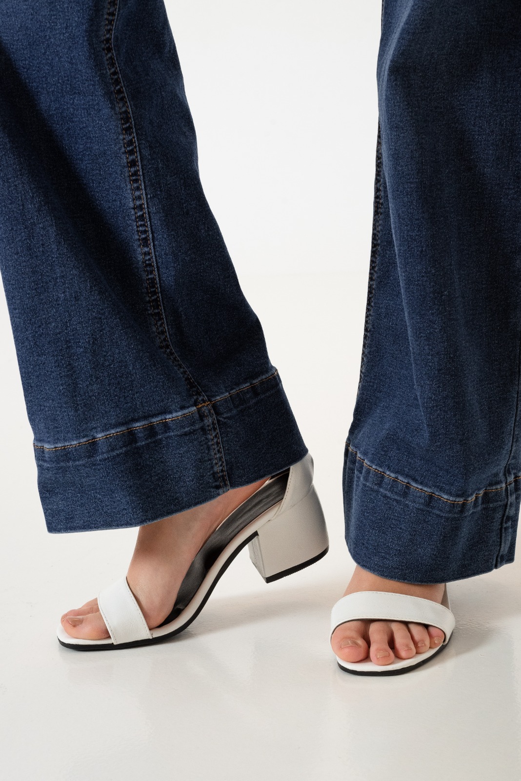 Jean estilo wid leg con detalle de botamanga, bolsillos, pasacinto, cierre y boton.