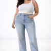 Jean estilo wid leg importado con detalle de encaje en su cintura, bolsillos, cierre y boton