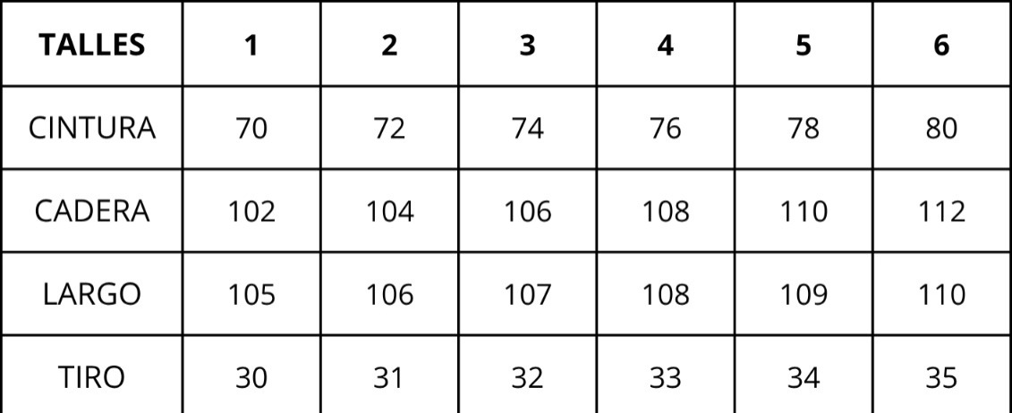 | Talles | 1, 2, 3, 4, 5, 6 |