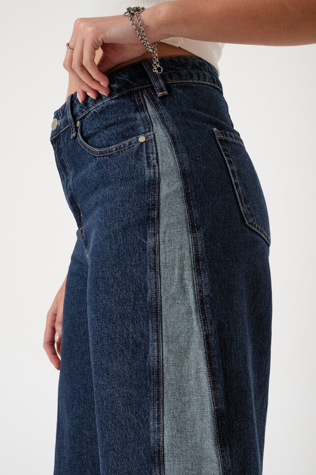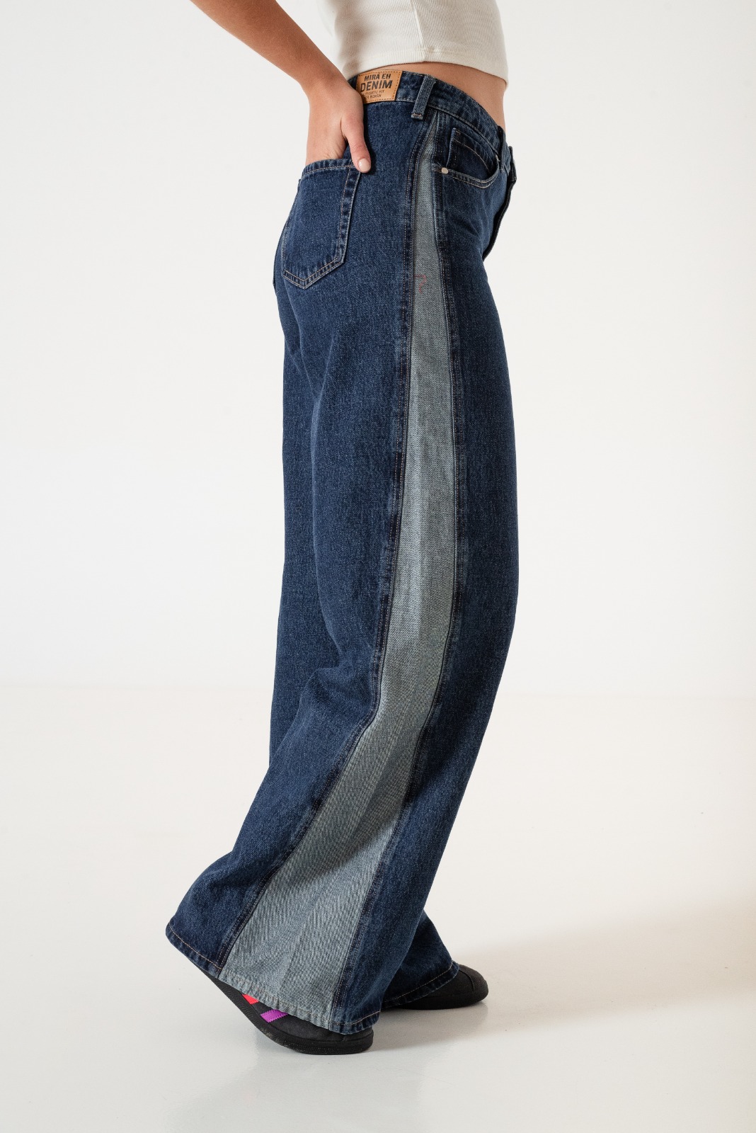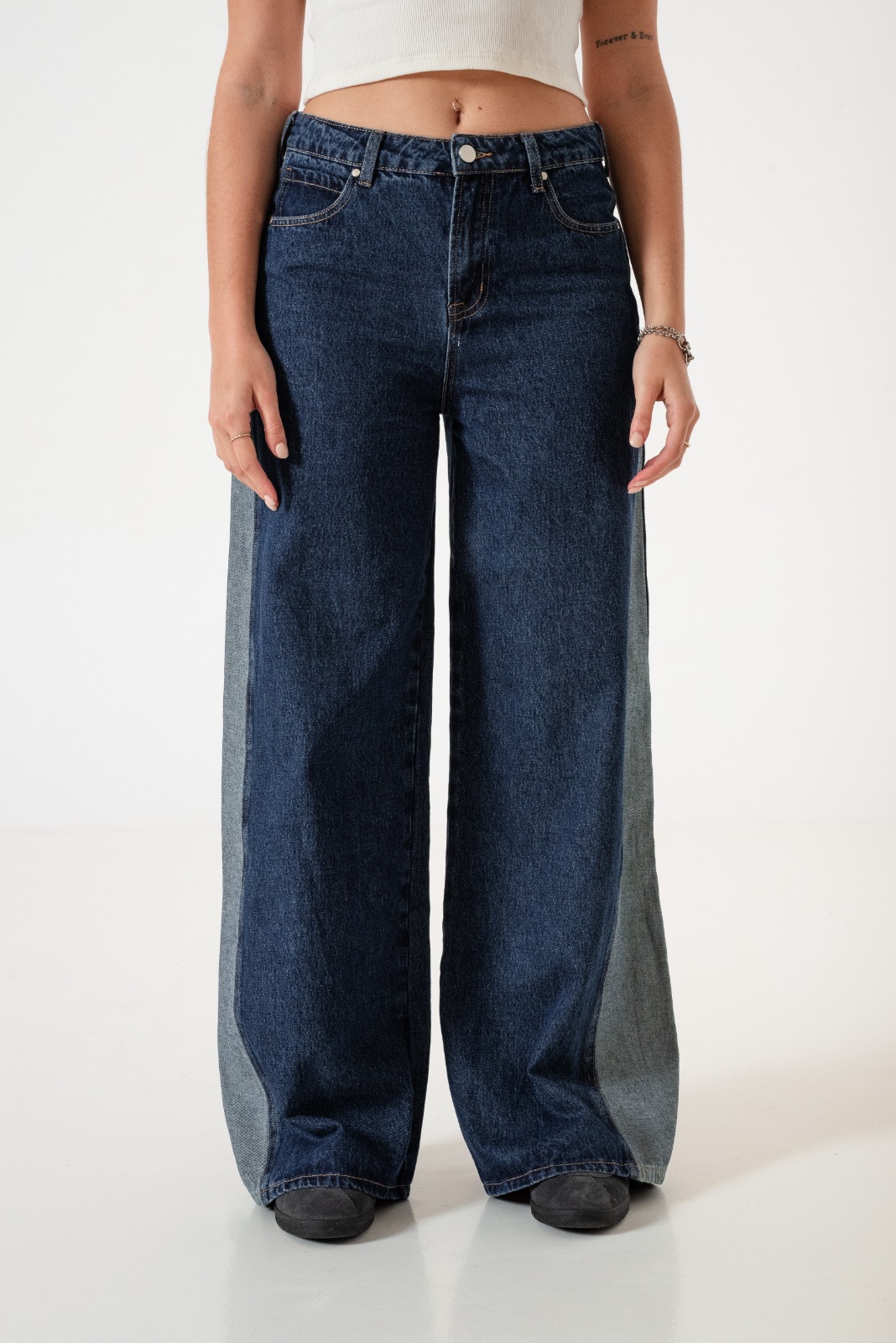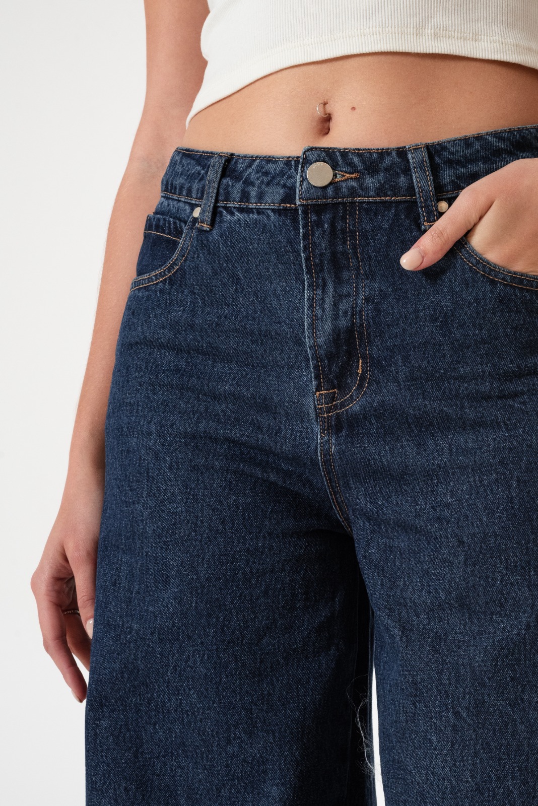 Jean estilo wid leg con detalle de bolsillos, pasacinto, cierre y boton.