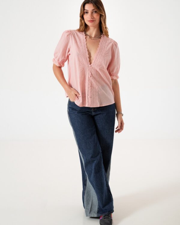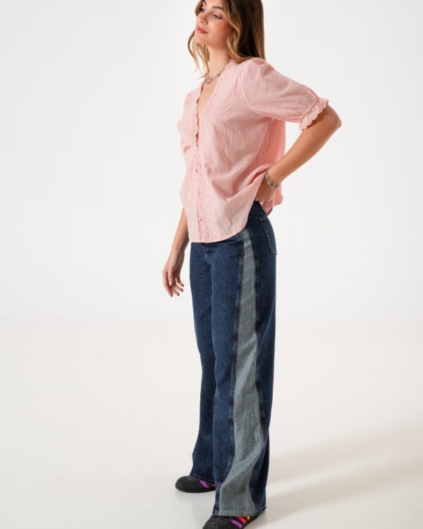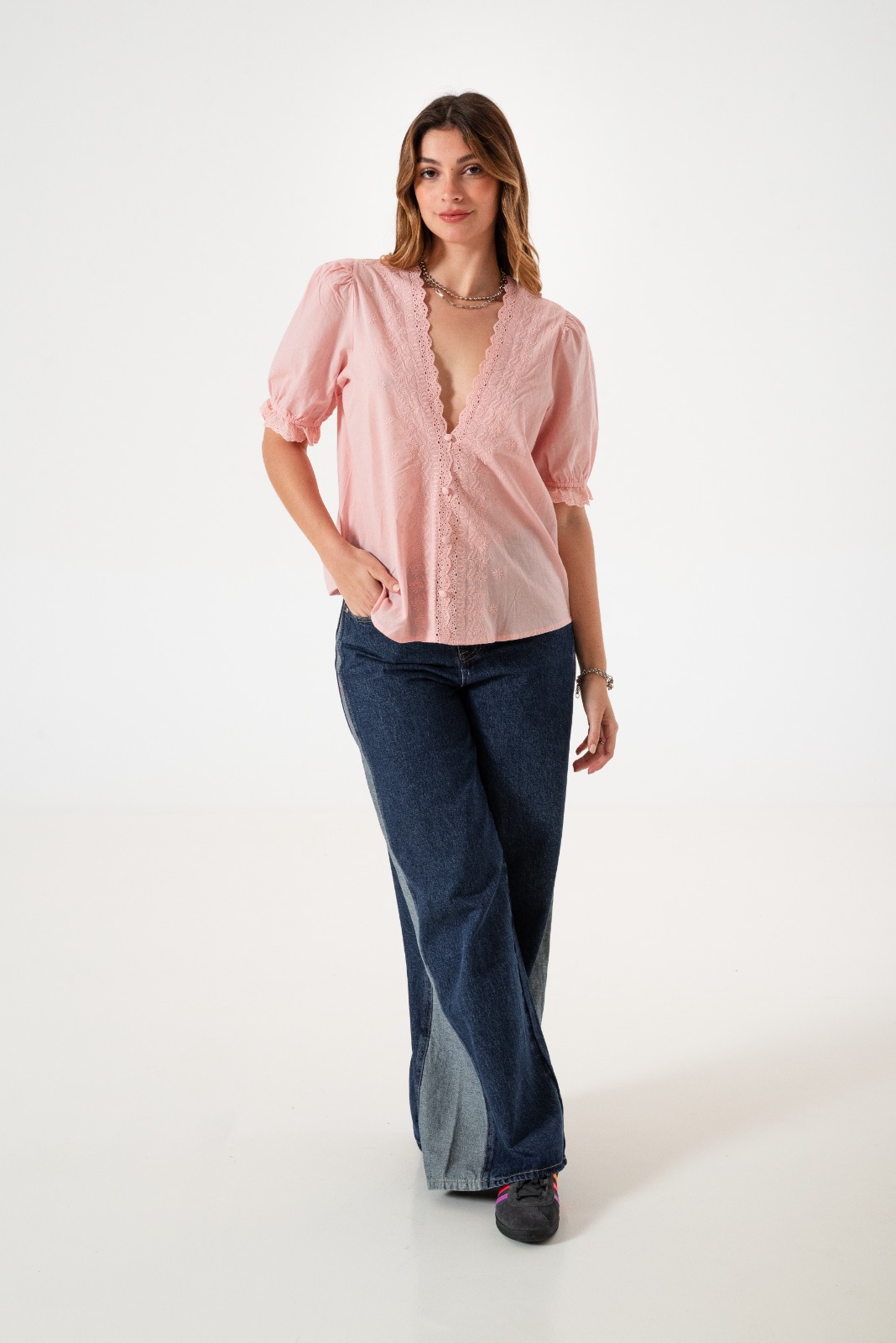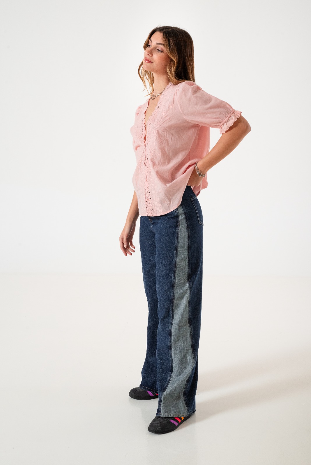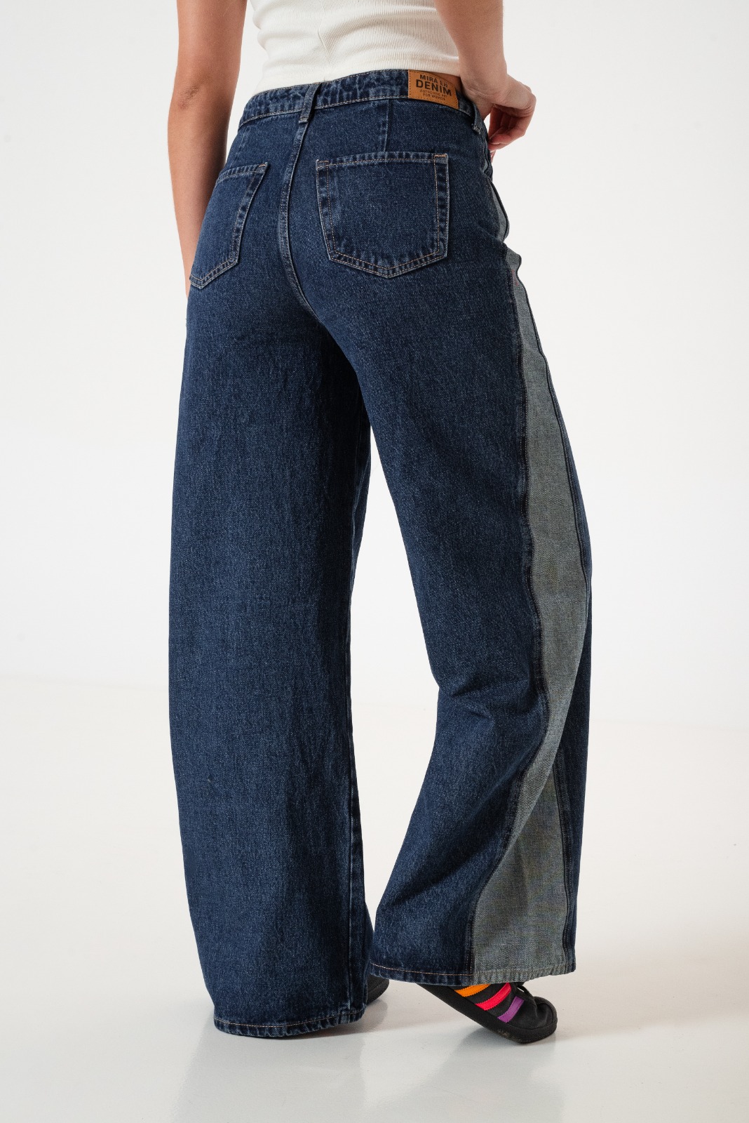 Jean estilo wid leg con detalle de bolsillos, pasacinto, cierre y boton.