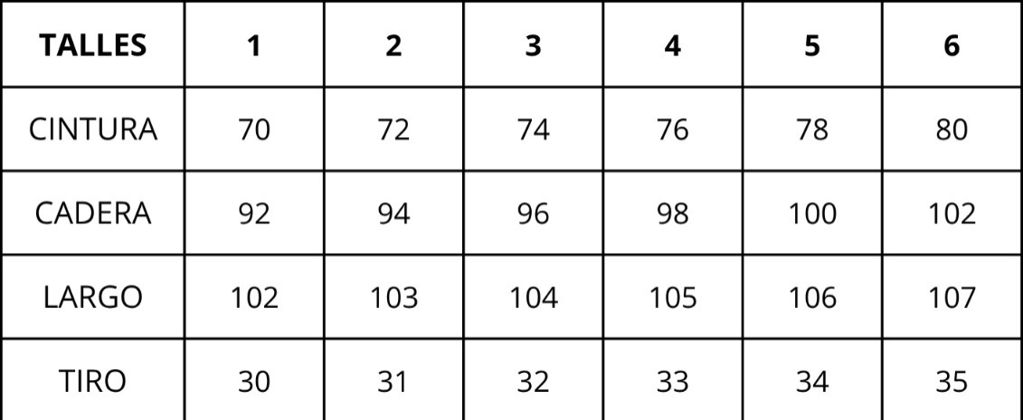 | Talles | 1, 2, 3, 4, 5, 6 |
