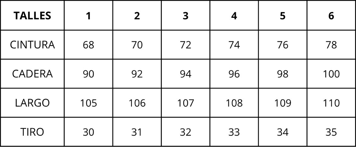 | Talles | 1, 2, 3, 4, 5, 6 |