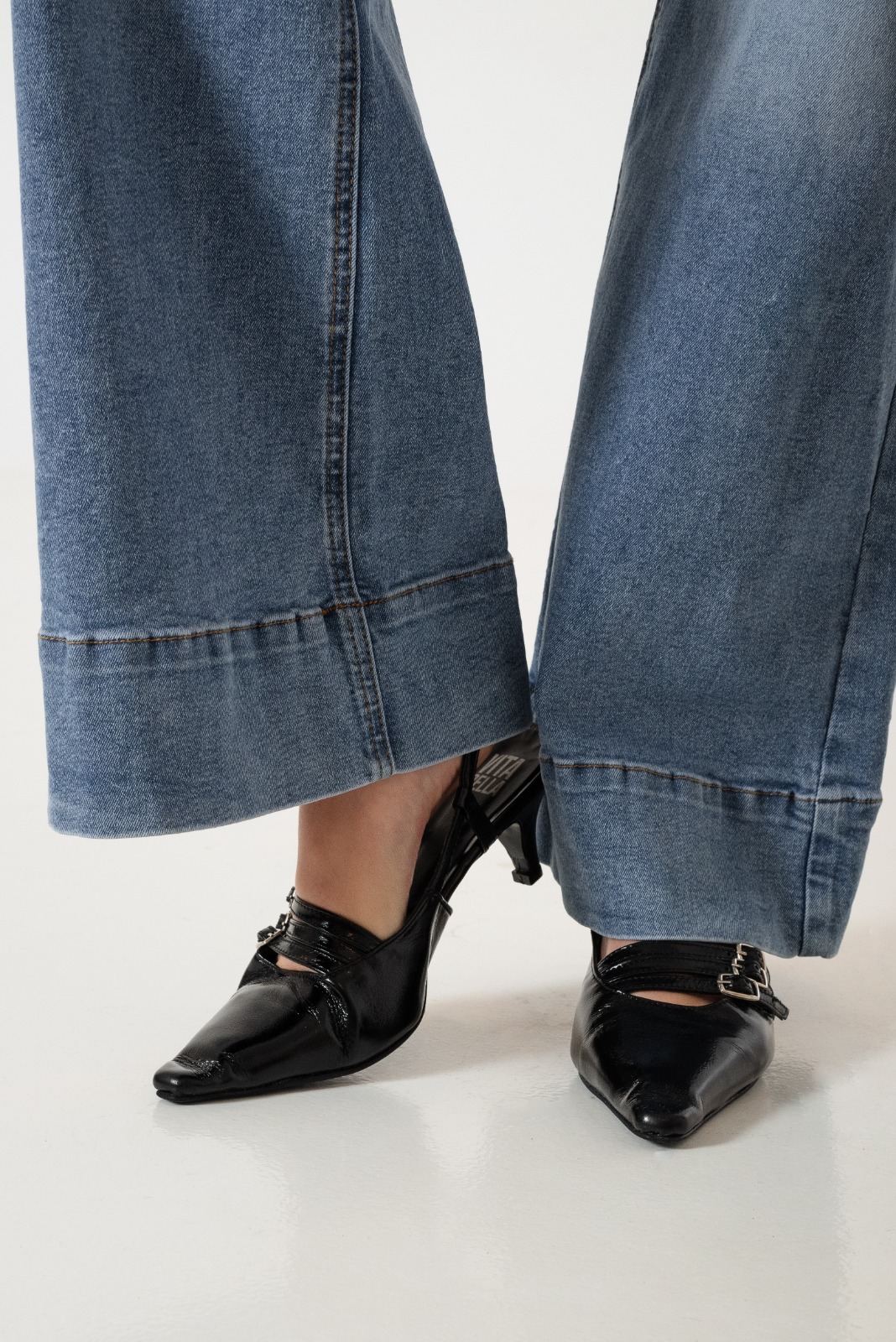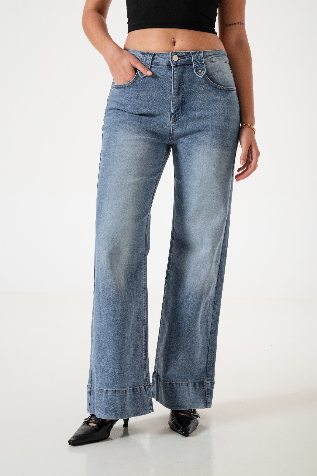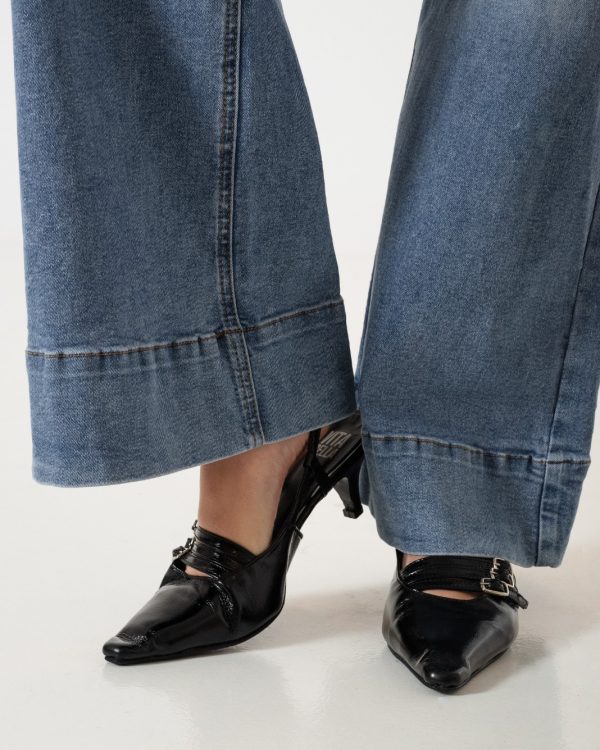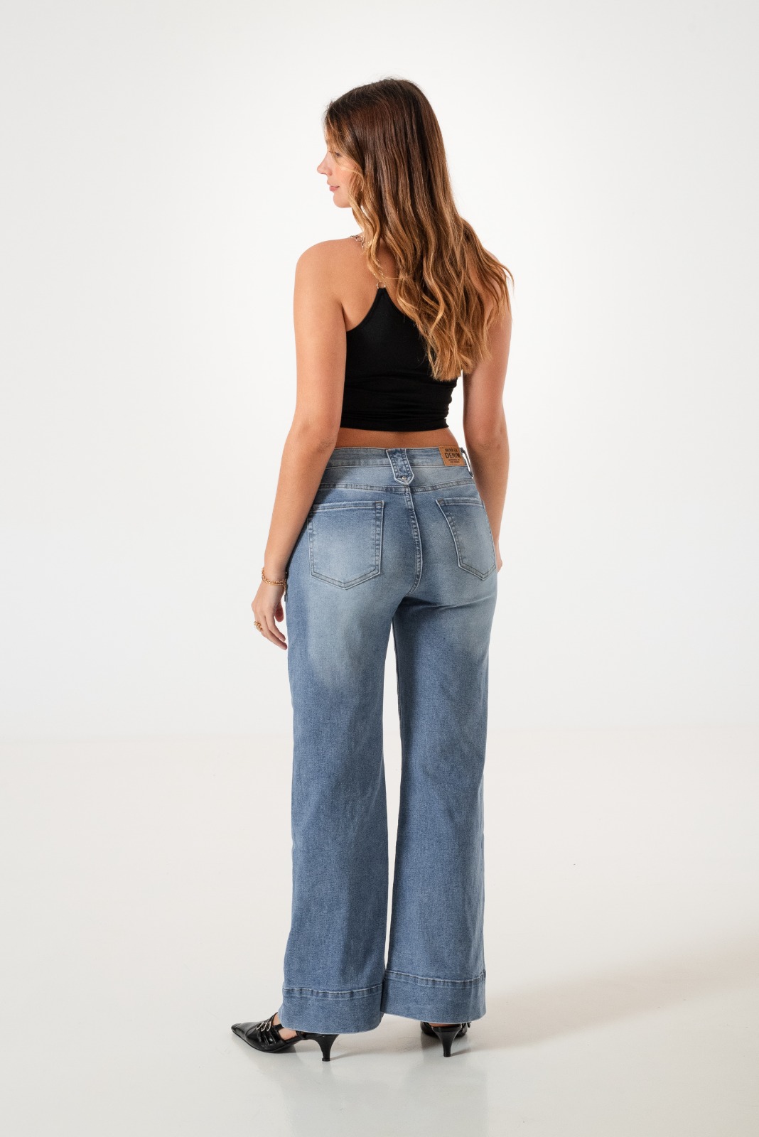 Vaquero estilo wid leg confeccionado en tela de jean con detalle de bolsillos, pasacinto, cierre y boton.