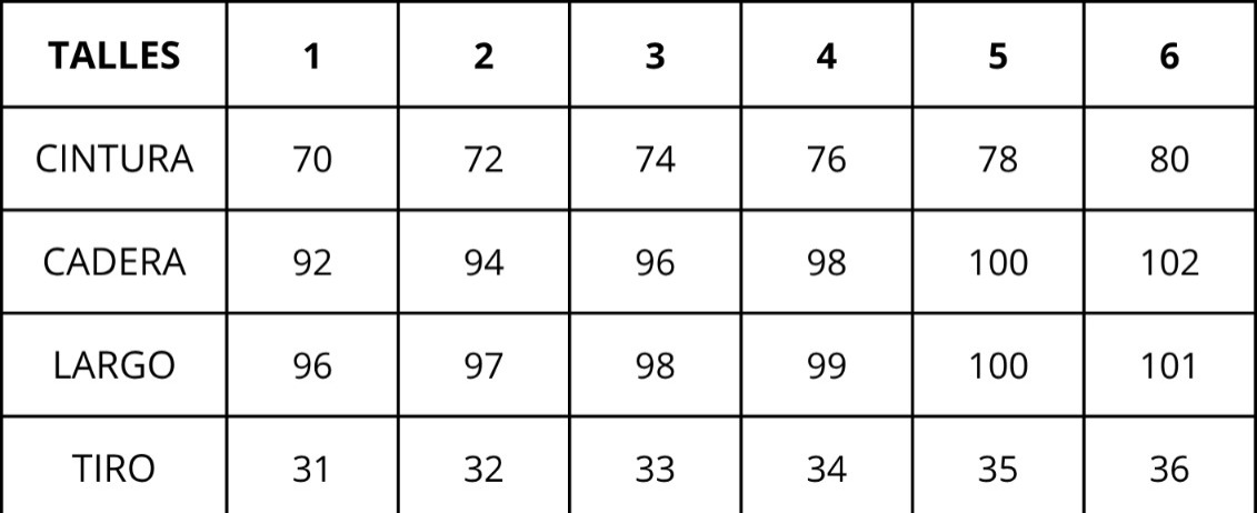 | Talles | 1, 2, 3, 4, 5, 6 |