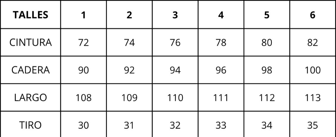| Talles | 1, 2, 3, 4, 5, 6 |