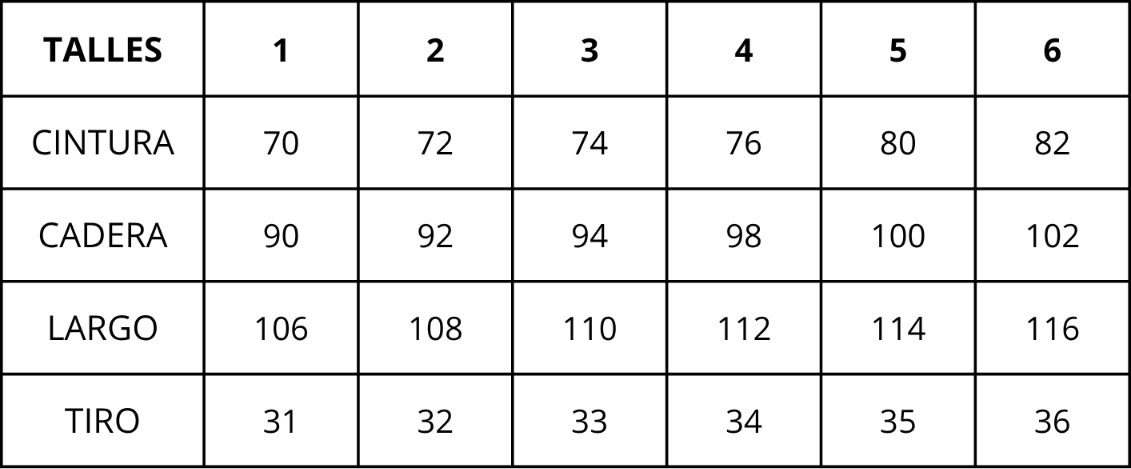 | Talles | 1, 2, 3, 4, 5, 6 |