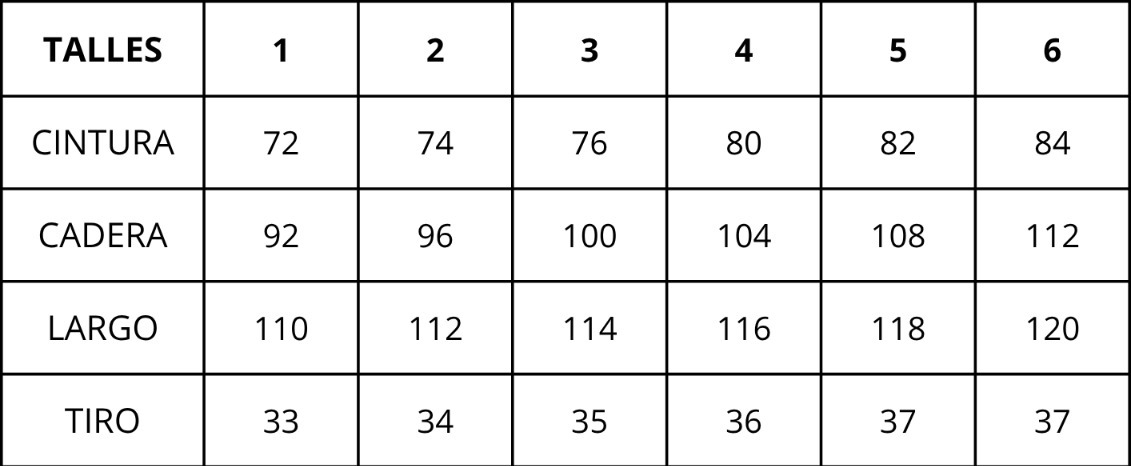 | Talles | 1, 2, 3, 4, 5, 6 |