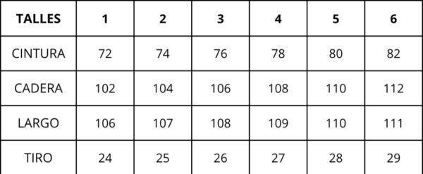 | Talles | 1, 2, 3, 4, 5, 6 |