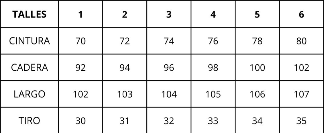 | Talles | 1, 2, 3, 4, 5, 6 |