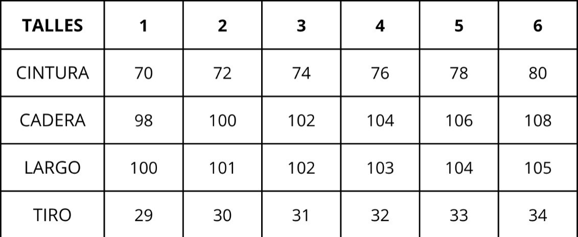 | Talles | 1, 2, 3, 4, 5, 6 |