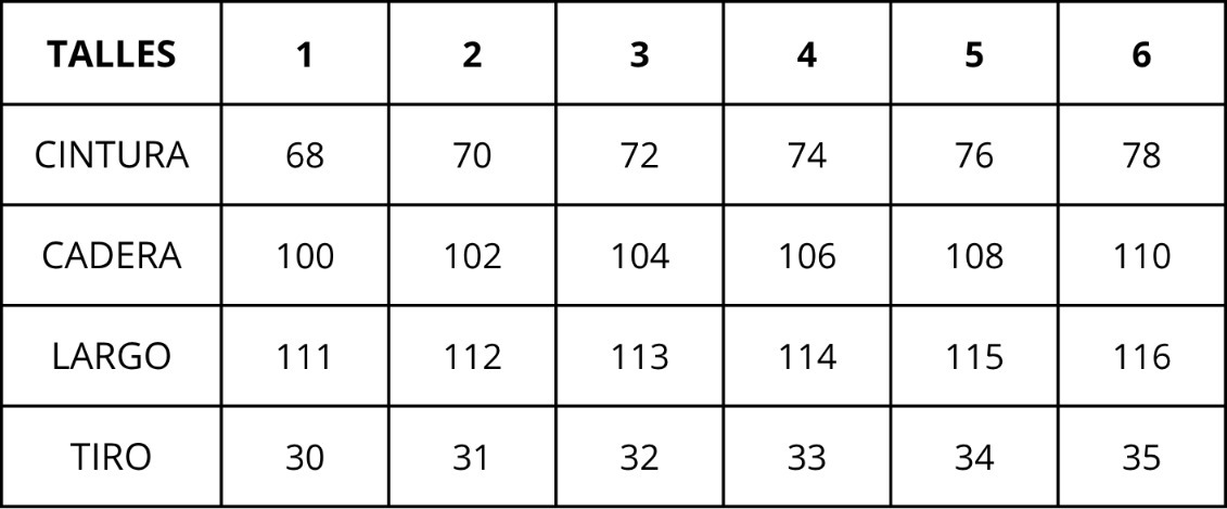 | Talles | 1, 2, 3, 4, 5, 6 |