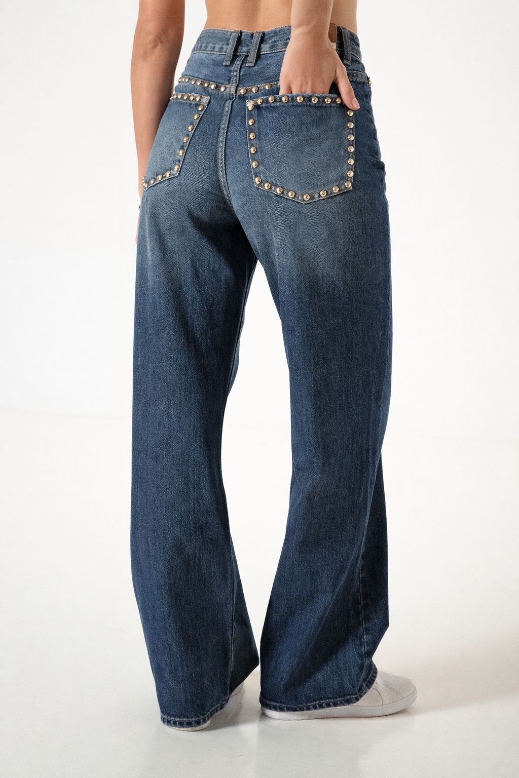 Jean estilo wid leg con detalle de tachas en su parte trasera
