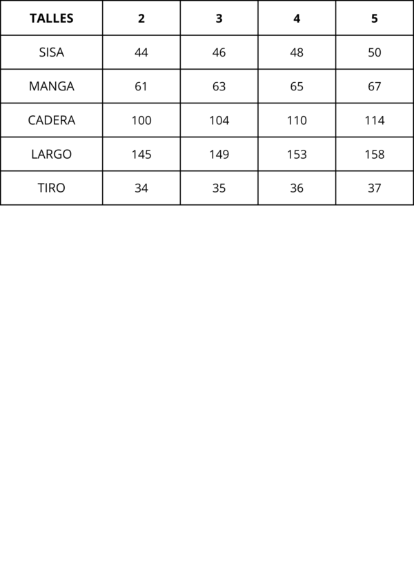| Talles | 2, 3, 4, 5 |