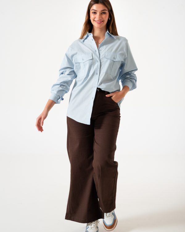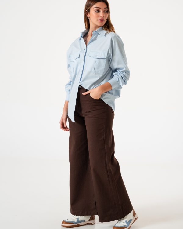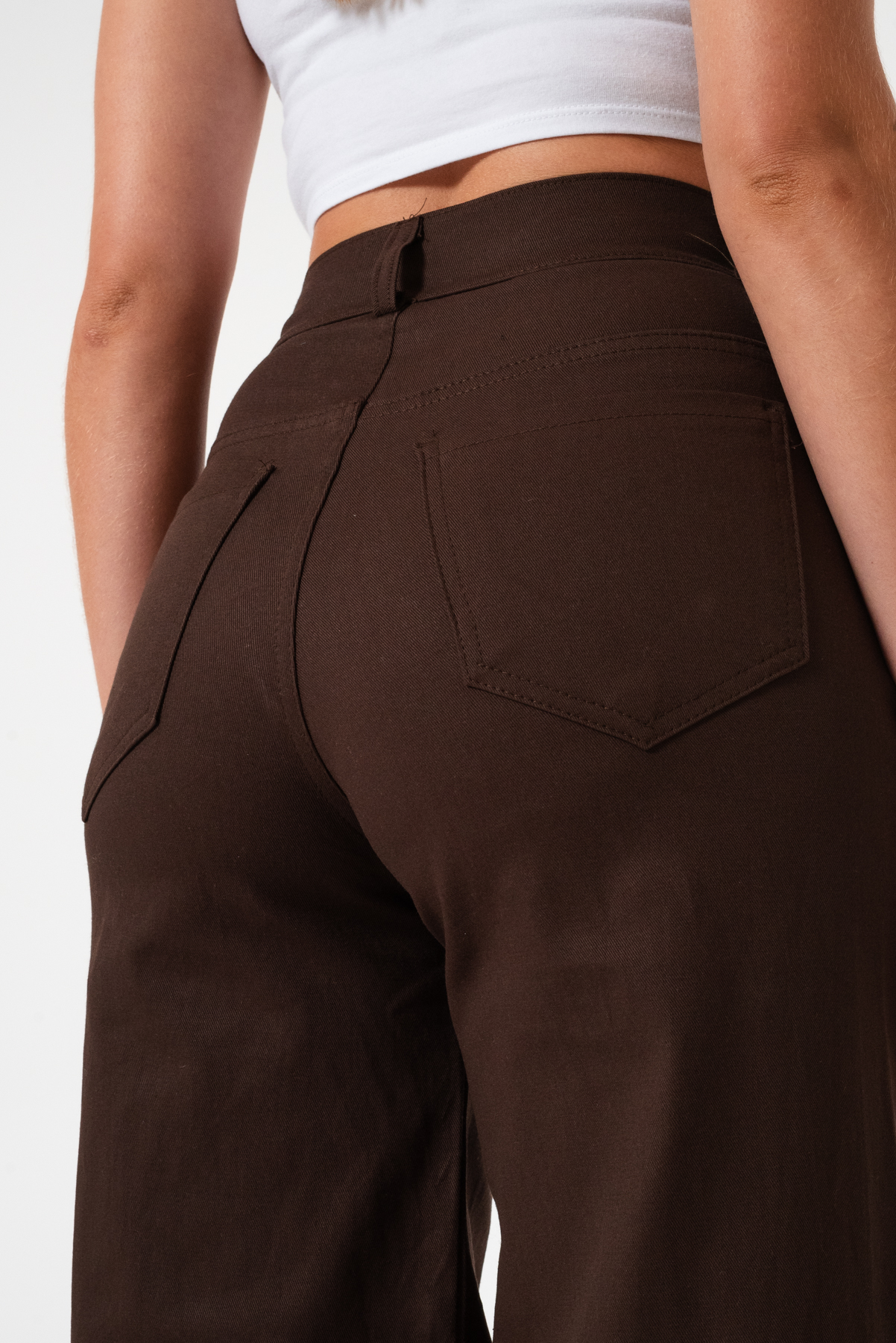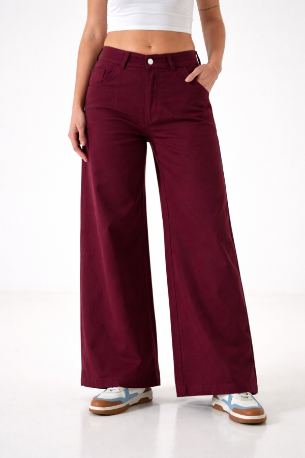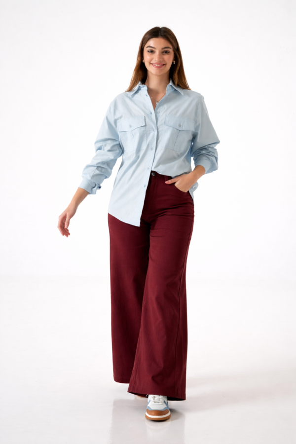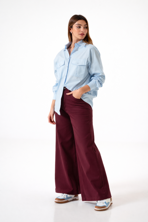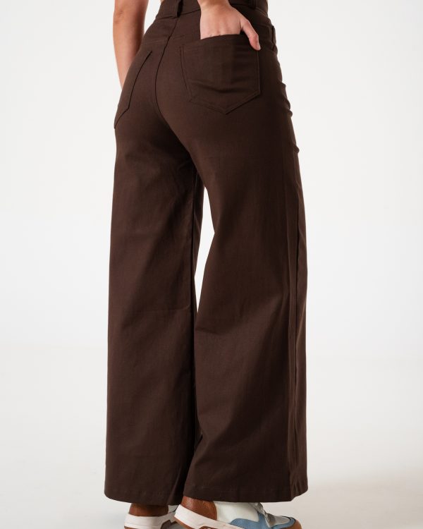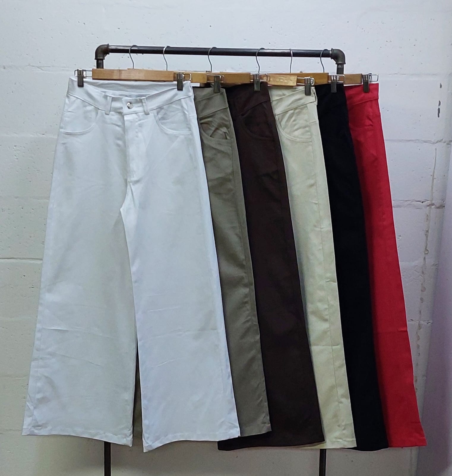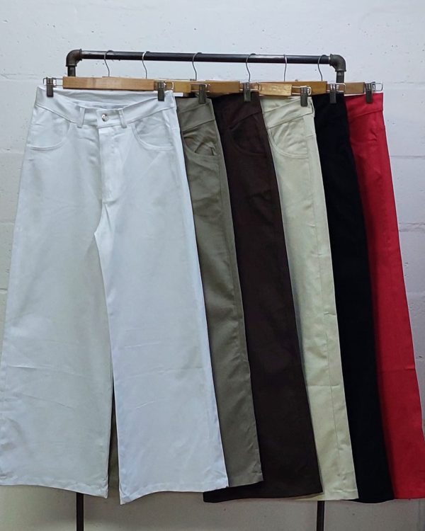 Pantalon estilo maxi erika confeccionado en tela de gabardina con detalle de pasacinto, bolsillos, cierre y boton.