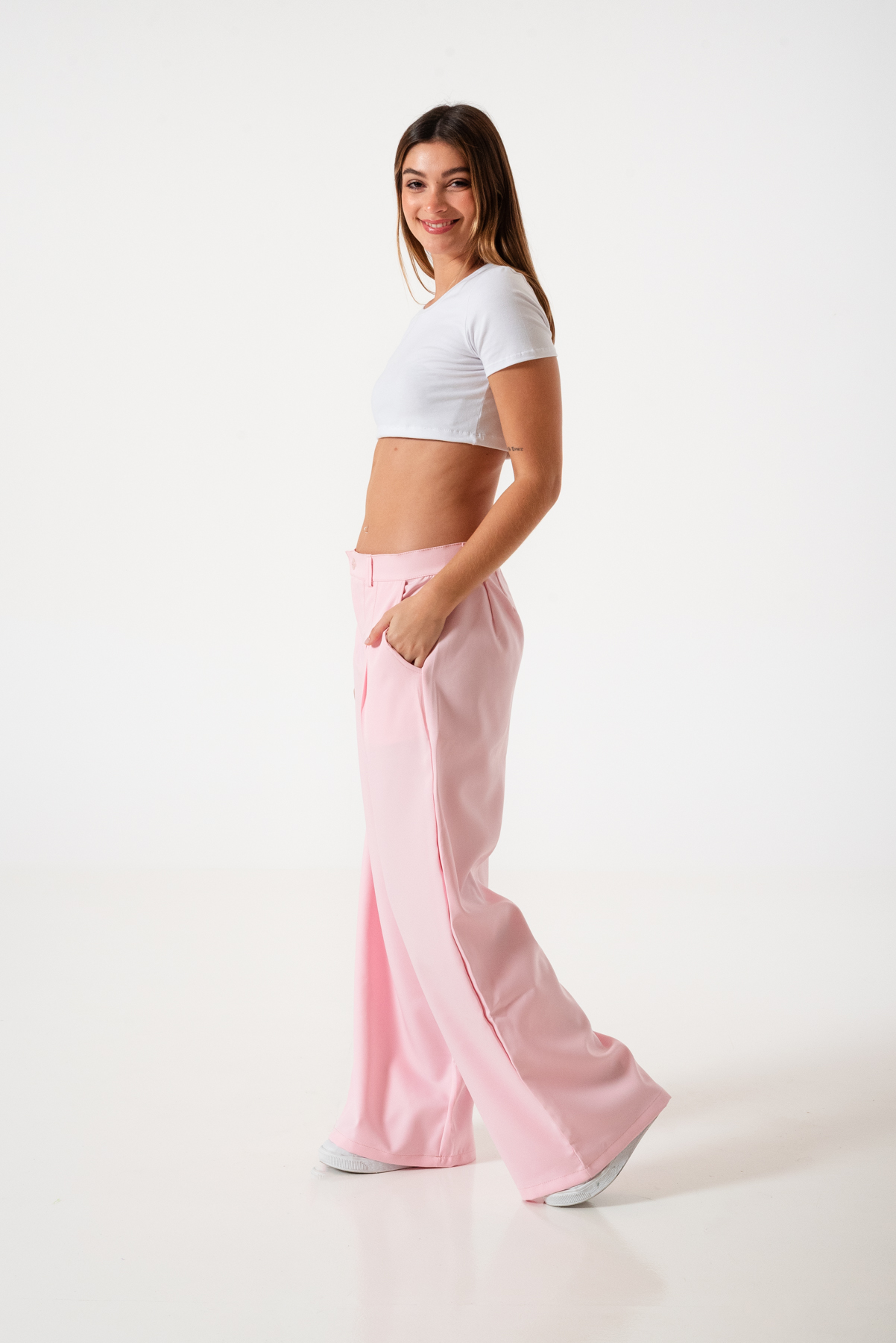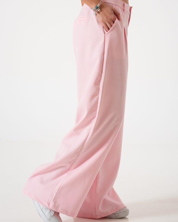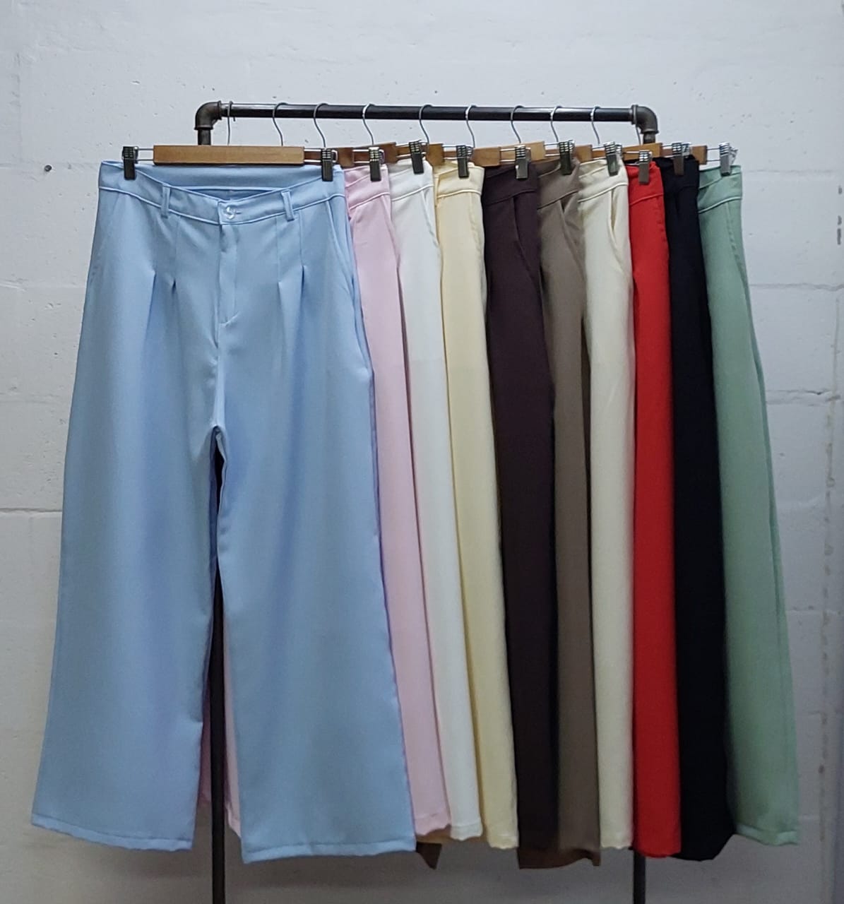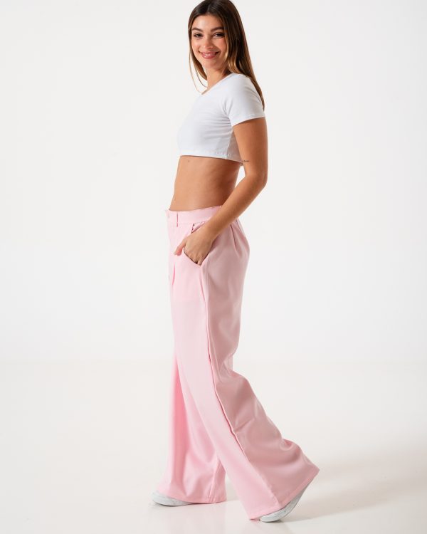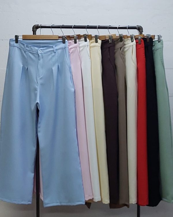 Pantalon estilo maxi palazo 40 confeccionado en tela de sastrero con detalle de doble pinzas delanteras, bolsillos, pasacinto, cierre y boton.