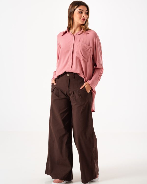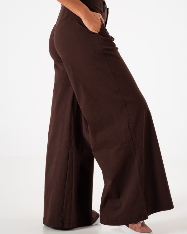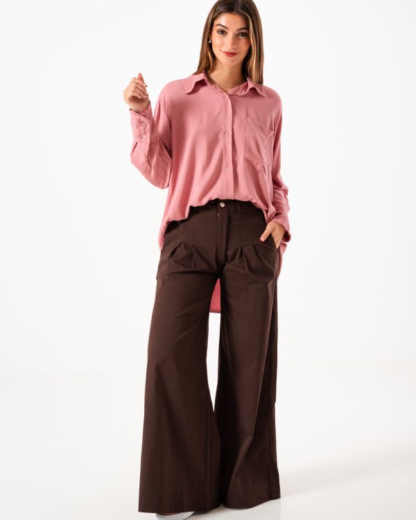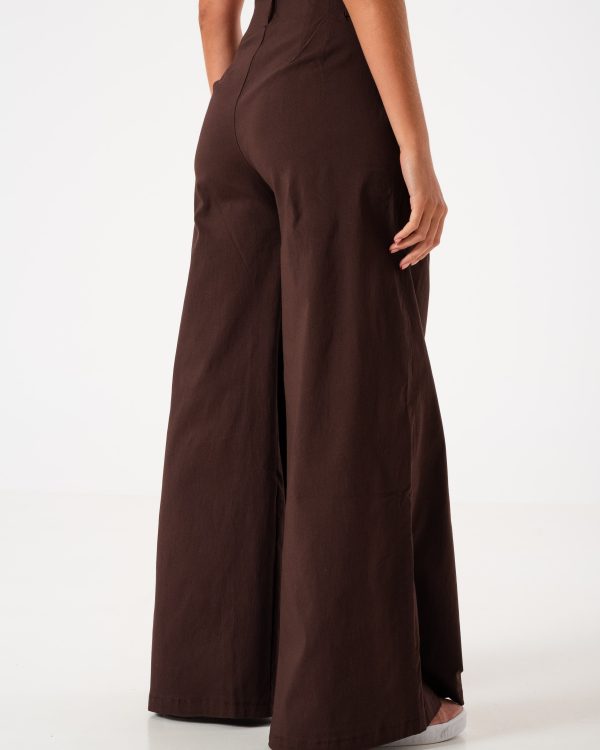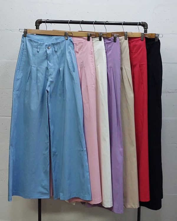 Pantalon estilo maxi palazo confeccionado en tela de bengalina con detalle de cintura avispa, bolsillos, pasacinto, cierre y boton.