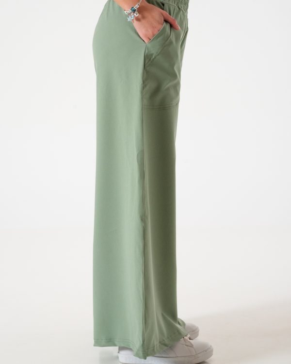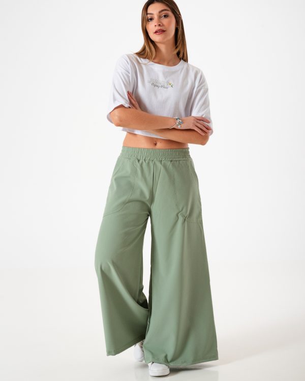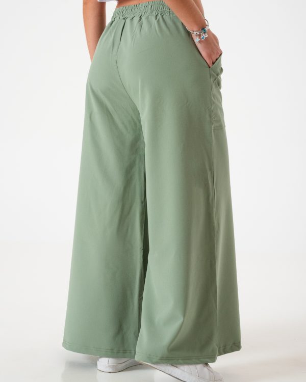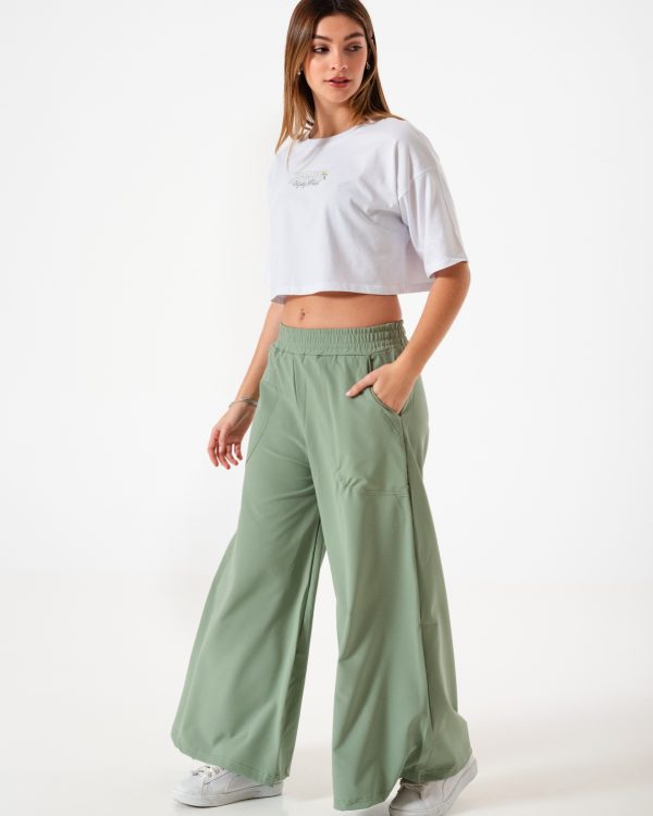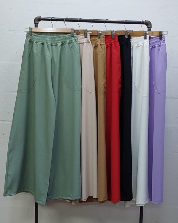 Pantalon estilo maxi palazo confeccionado en tela barbie con detalle de bolsillos y cintura elastizada