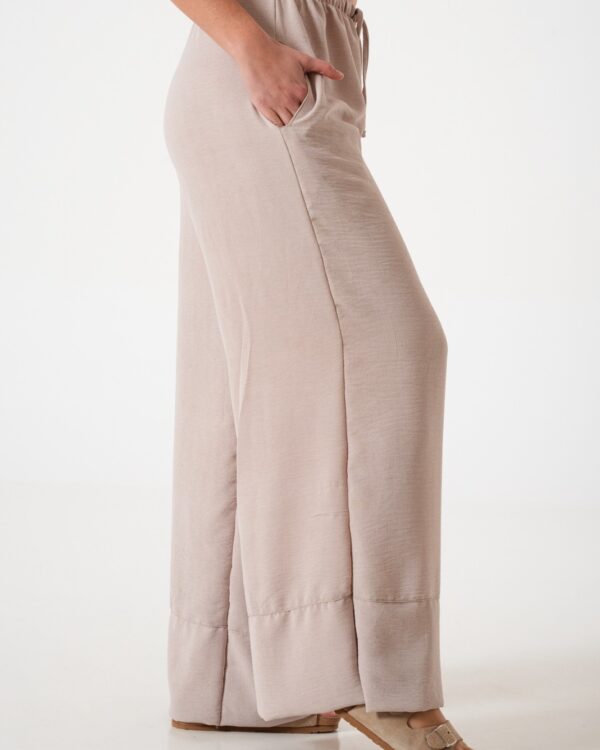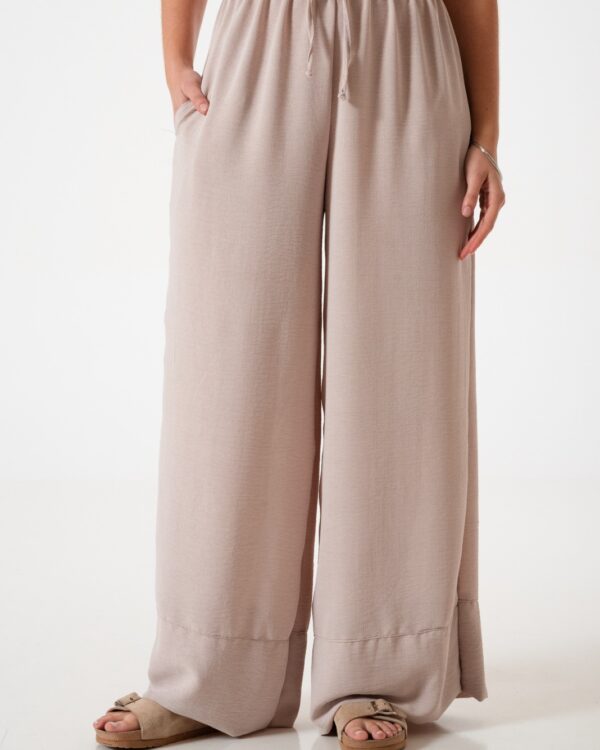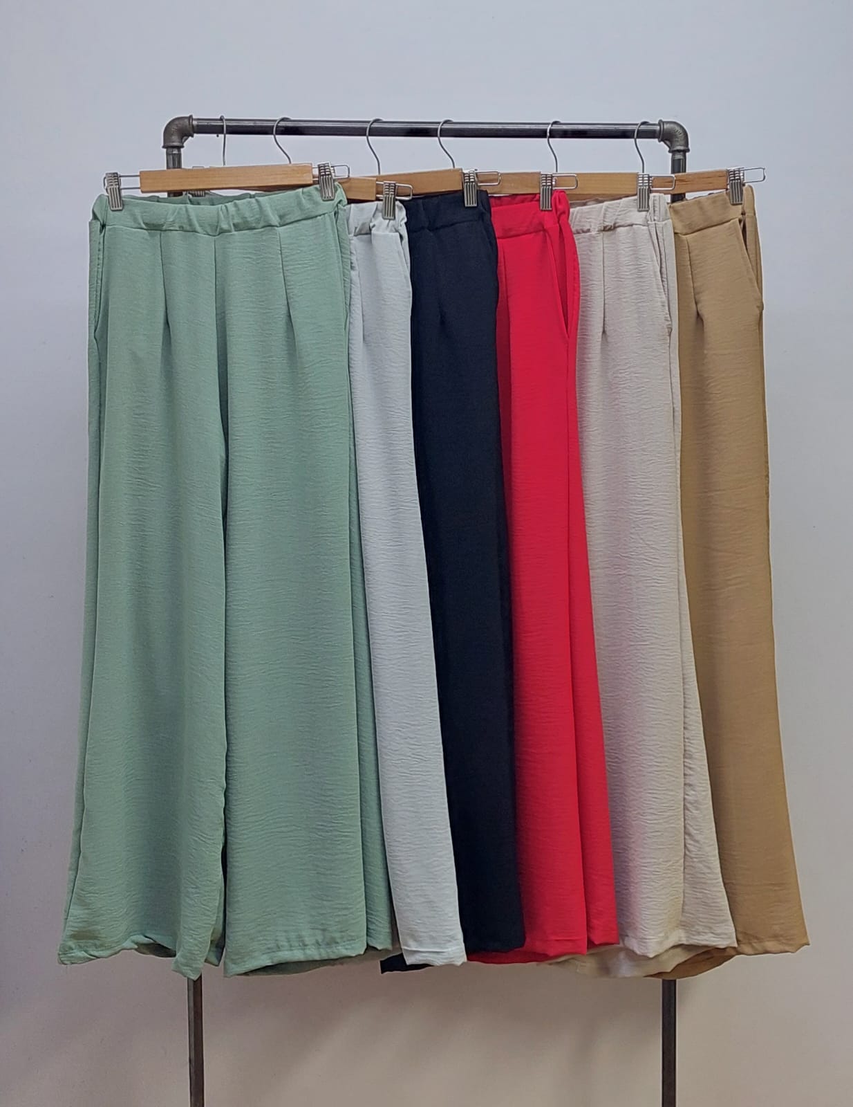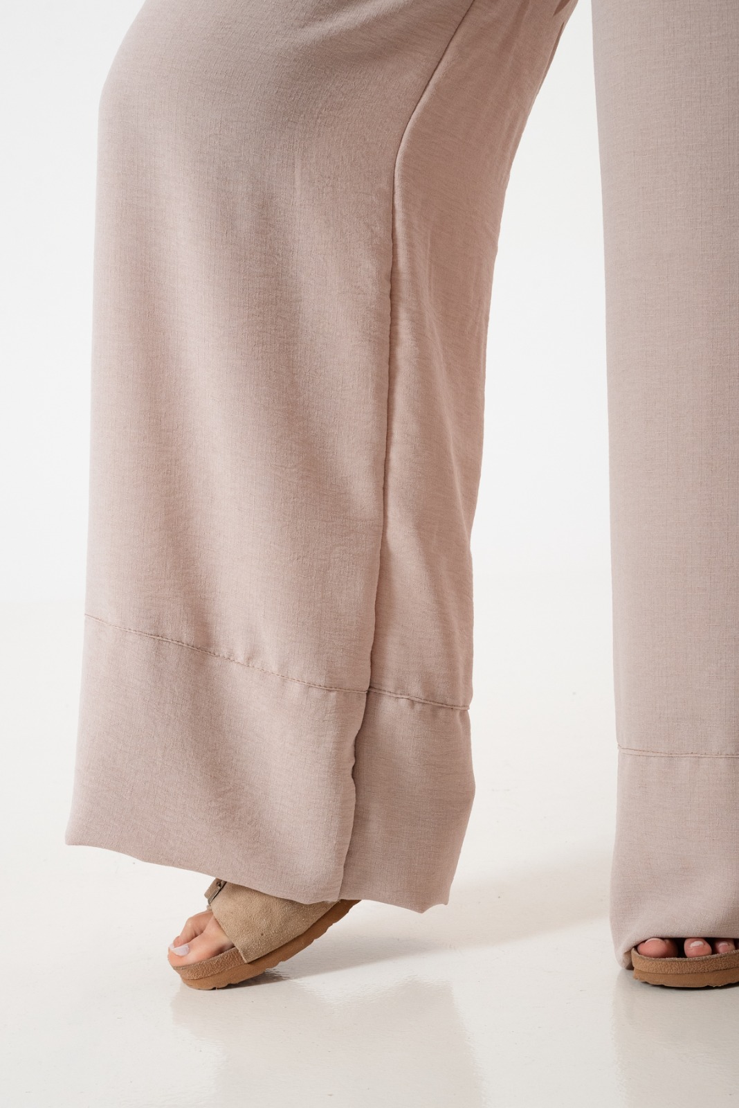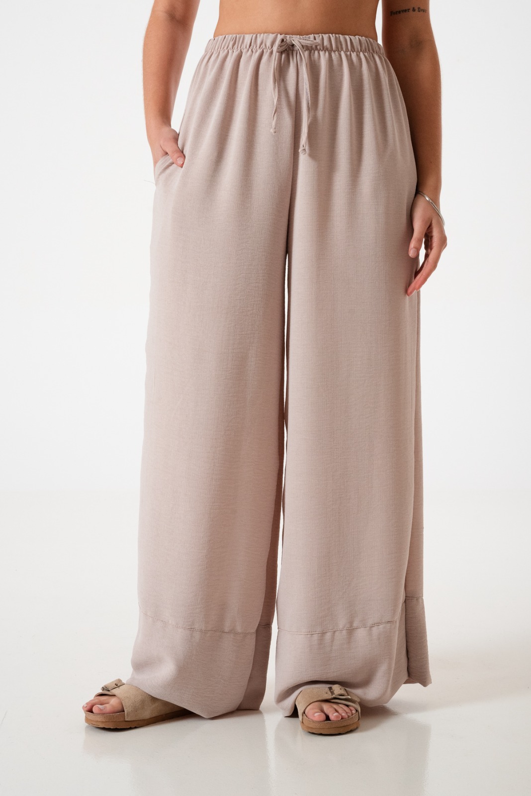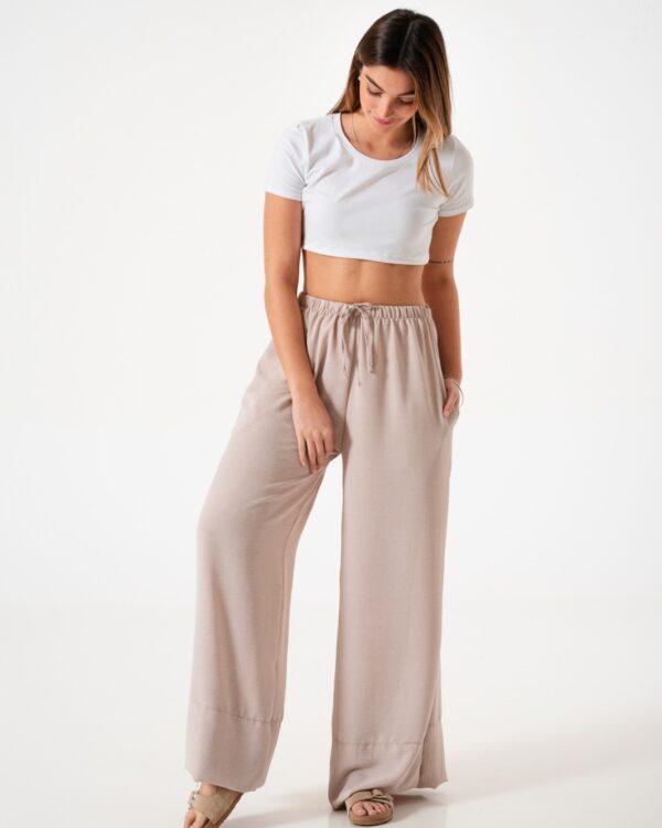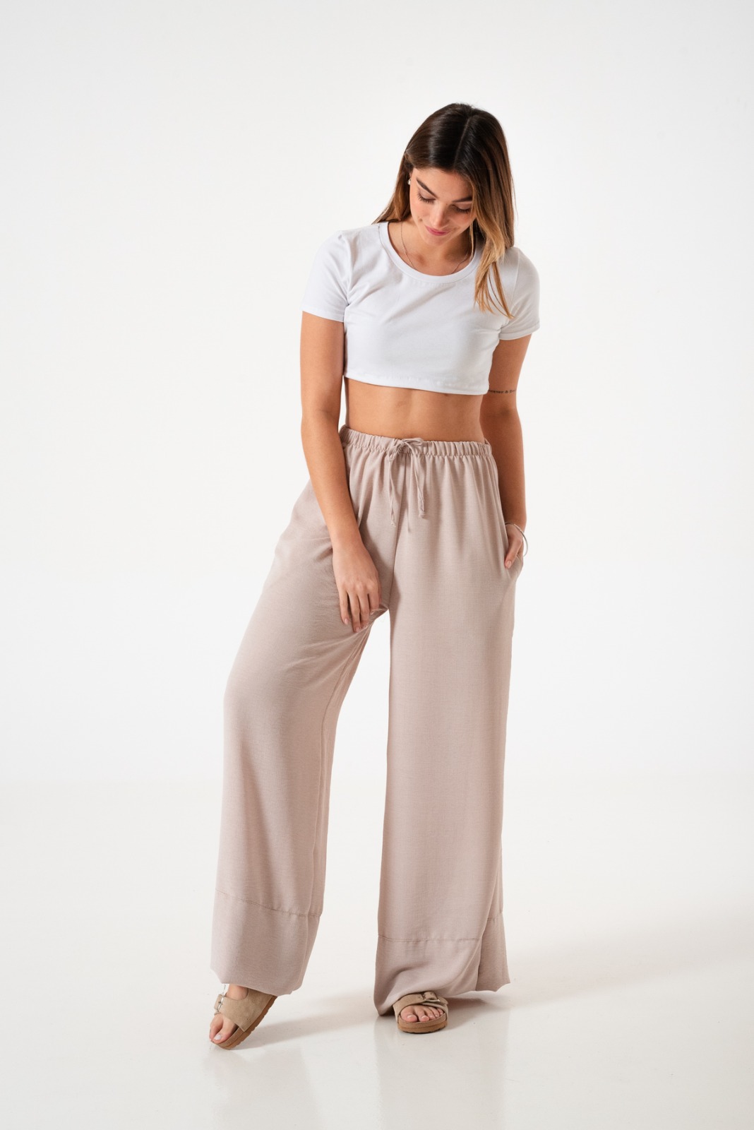 Pantalon estilo maxi palazo confeccionado en tela cei con detalle de bolsillos y cintura elastizada