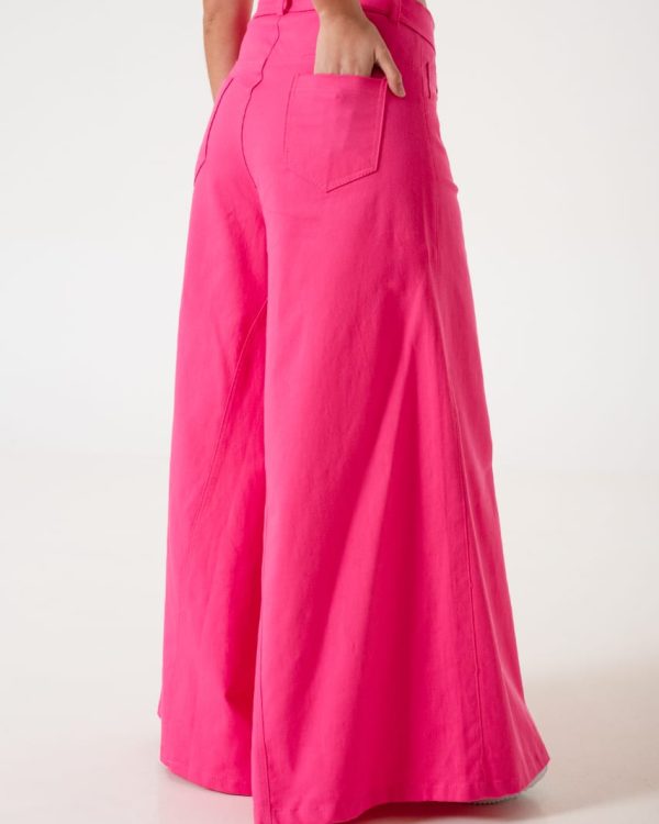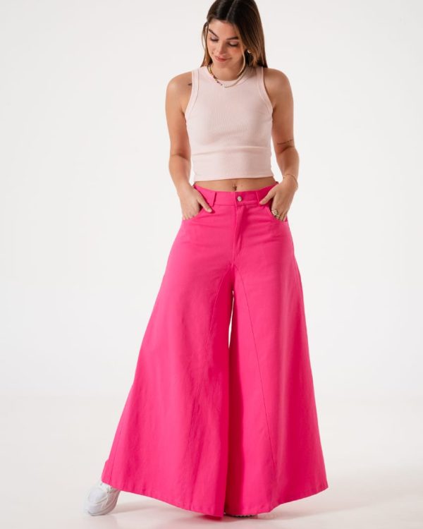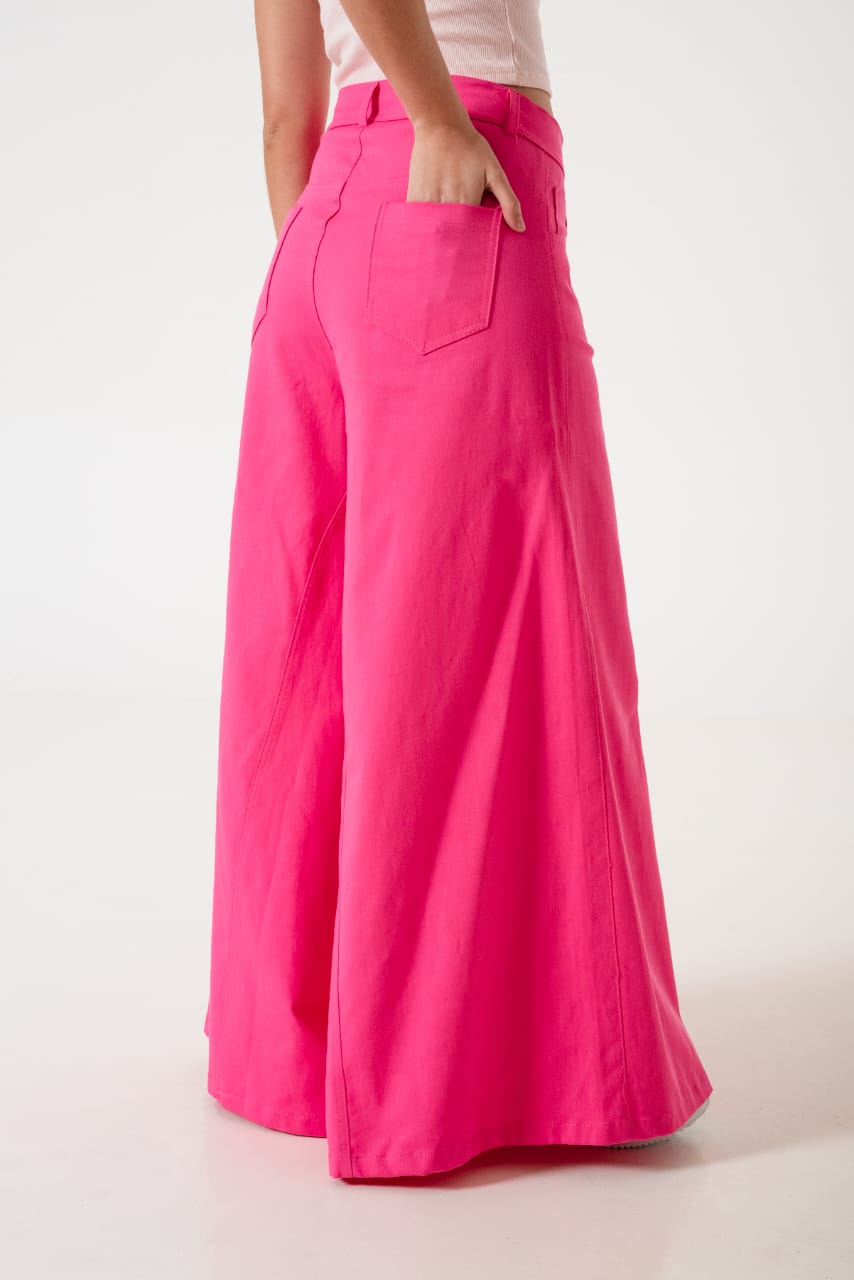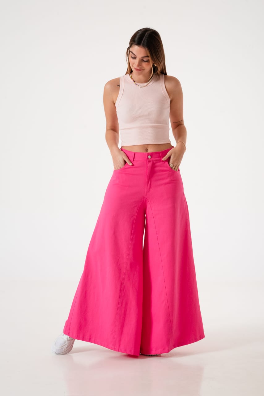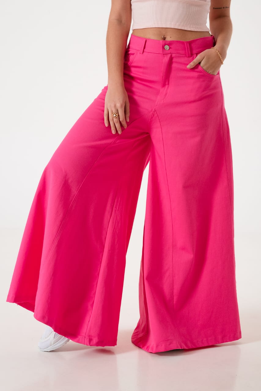 Pantalon estilo maxi palazo xxl confeccionado de argentina con detalle de bolsillos, pasacinto, cierre y boton.
