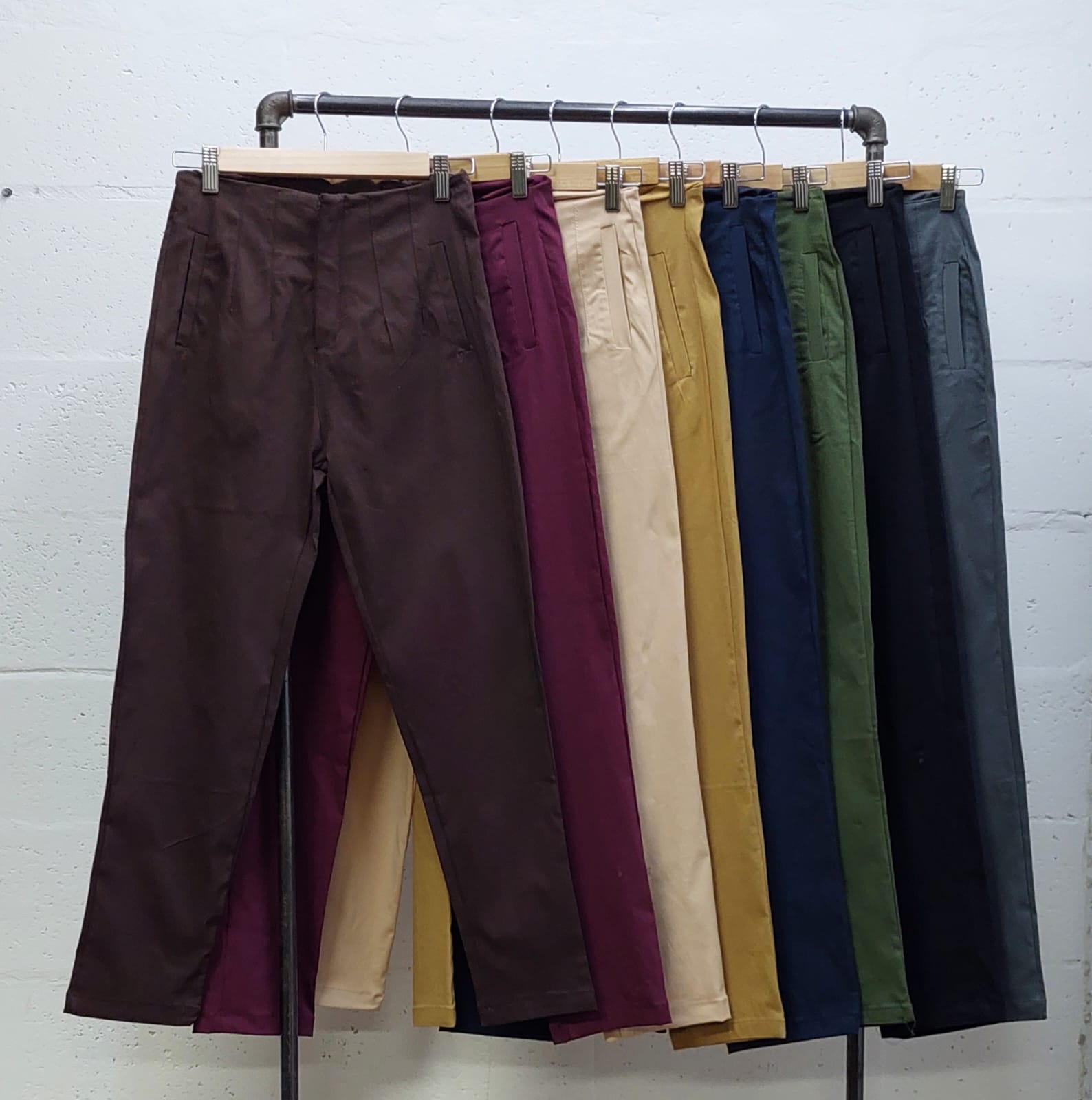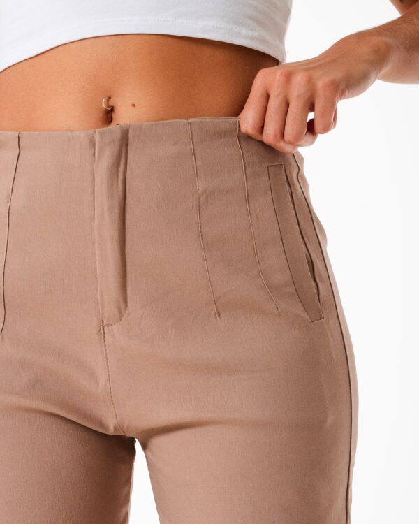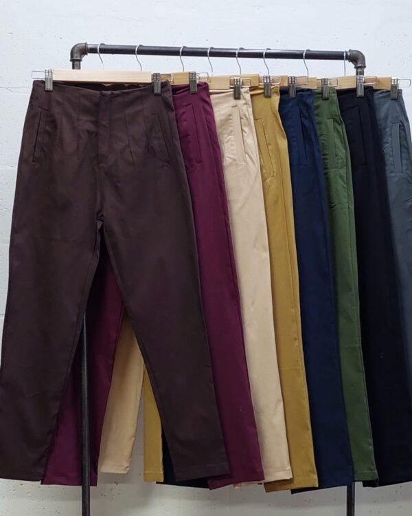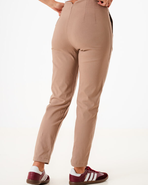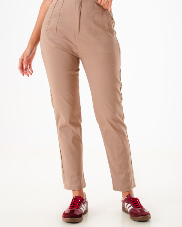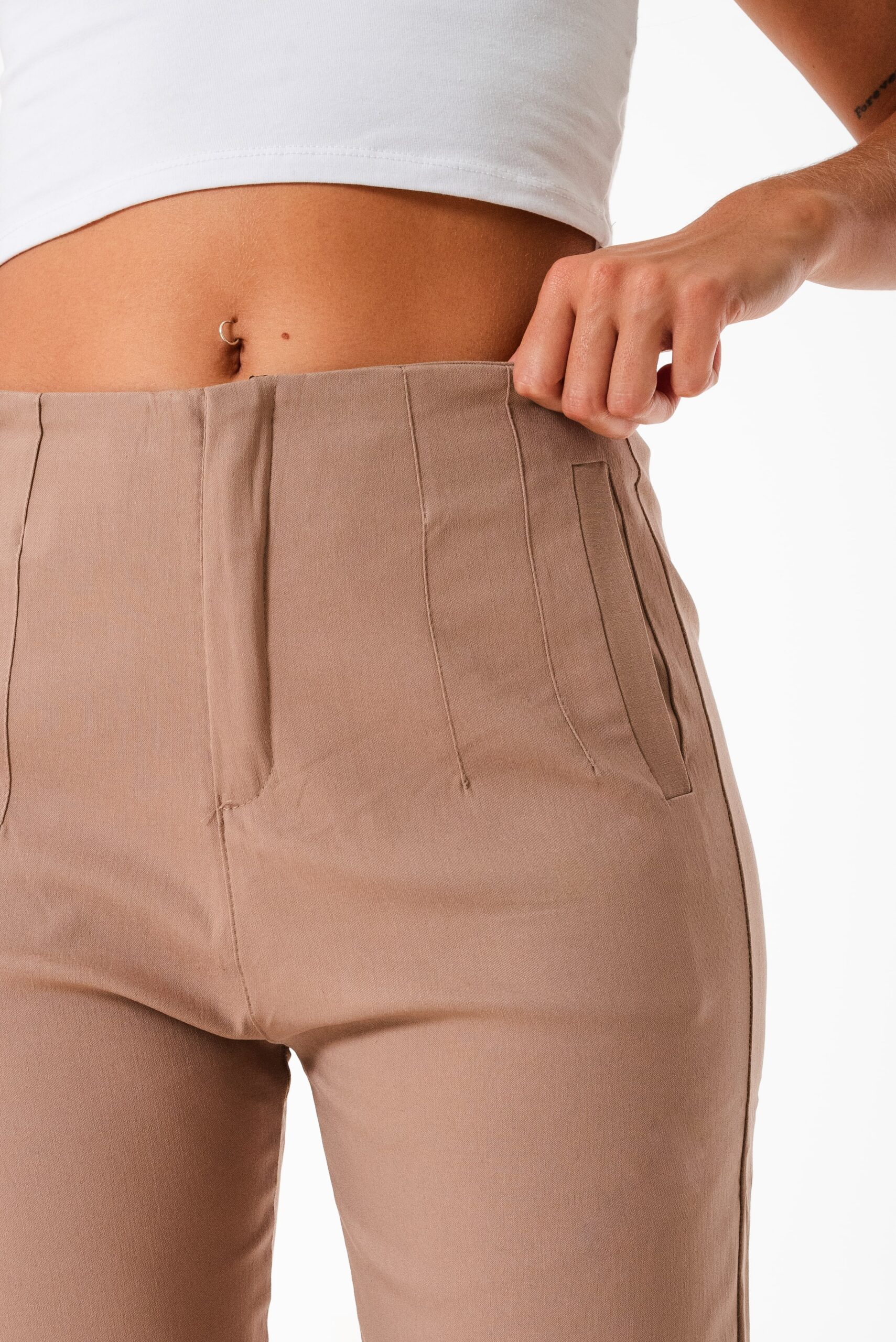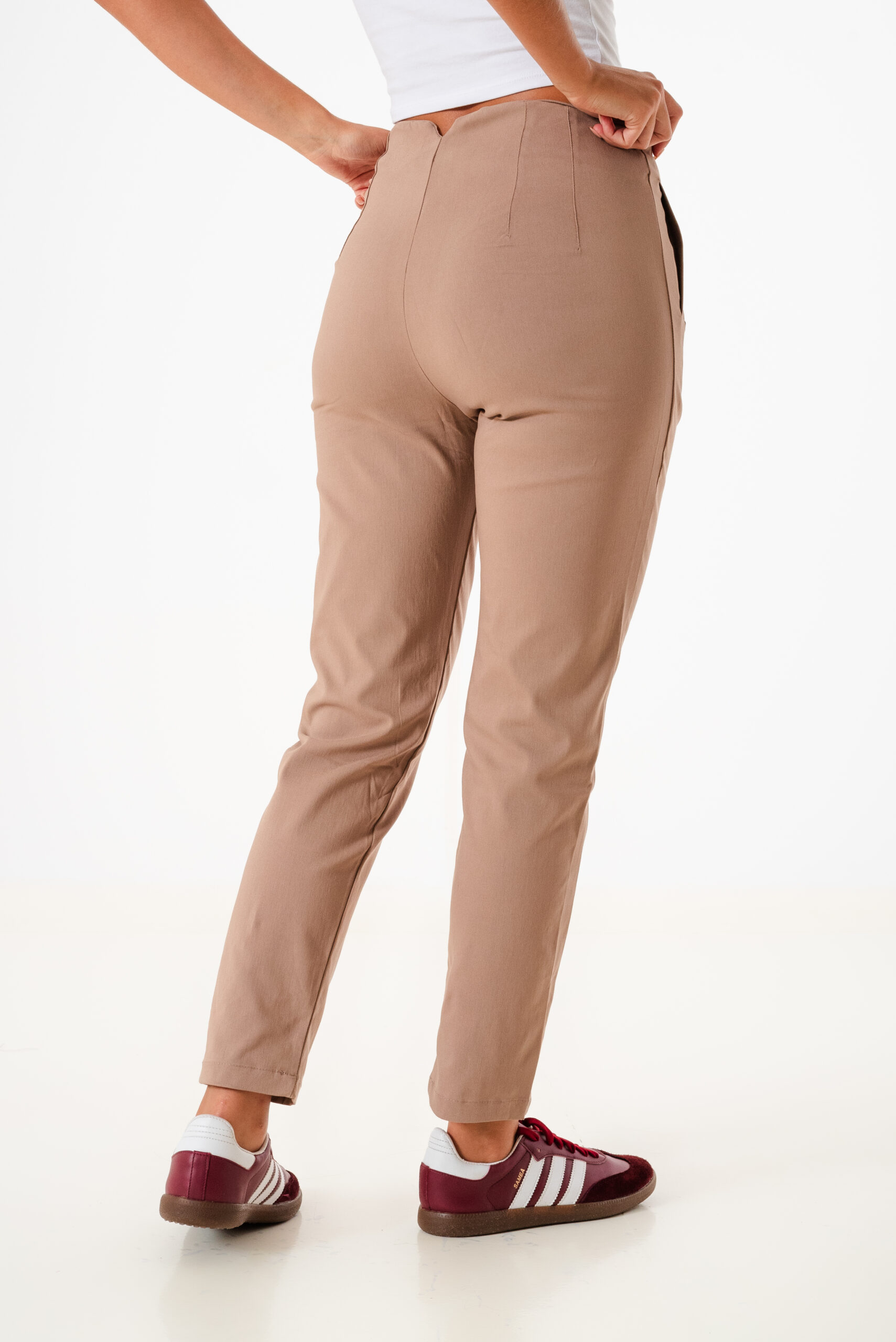 Pantalon estilo mom confeccionado en tela de bengalina con detalle de bolsillo escondido, cierre y boton.
