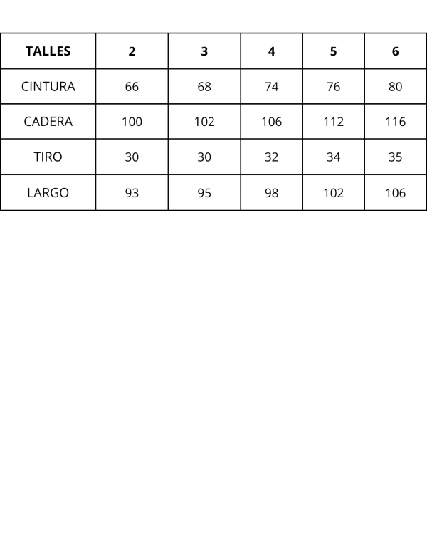 | Talles | 2, 3, 4, 5, 6 |